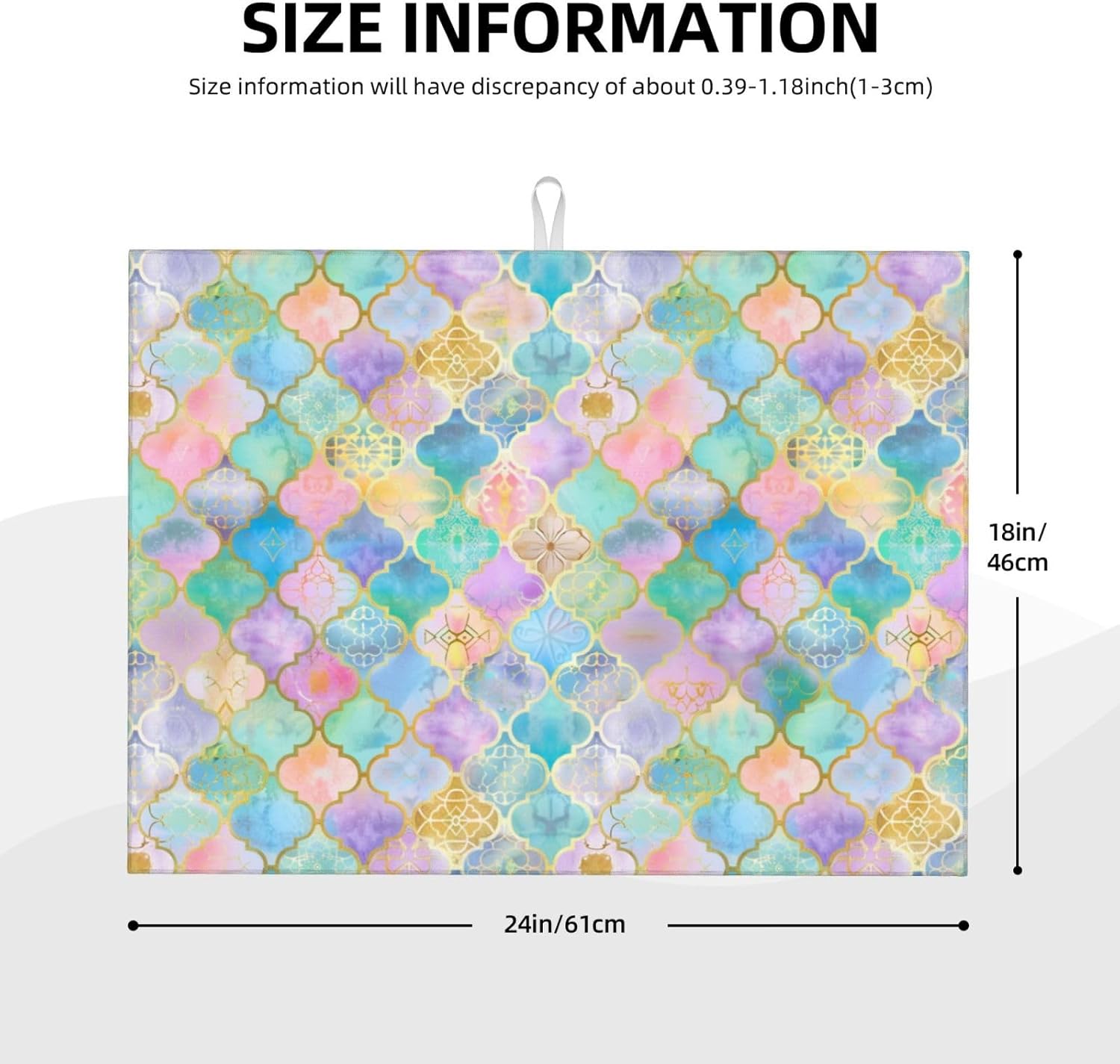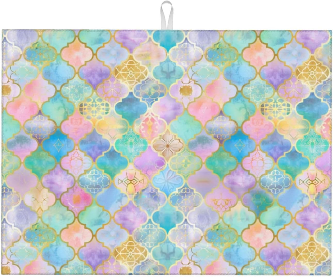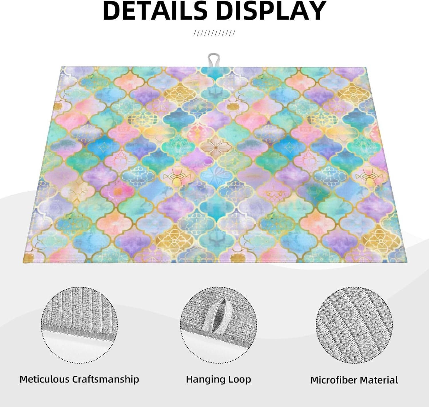 Absorbent Dish Drying Mat For Kitchen Counter, Rainbow Morocco Microfiber Dish Drying Pad 18x24 Inch, Kitchen Gadgets For Easy Clean Multi-Use