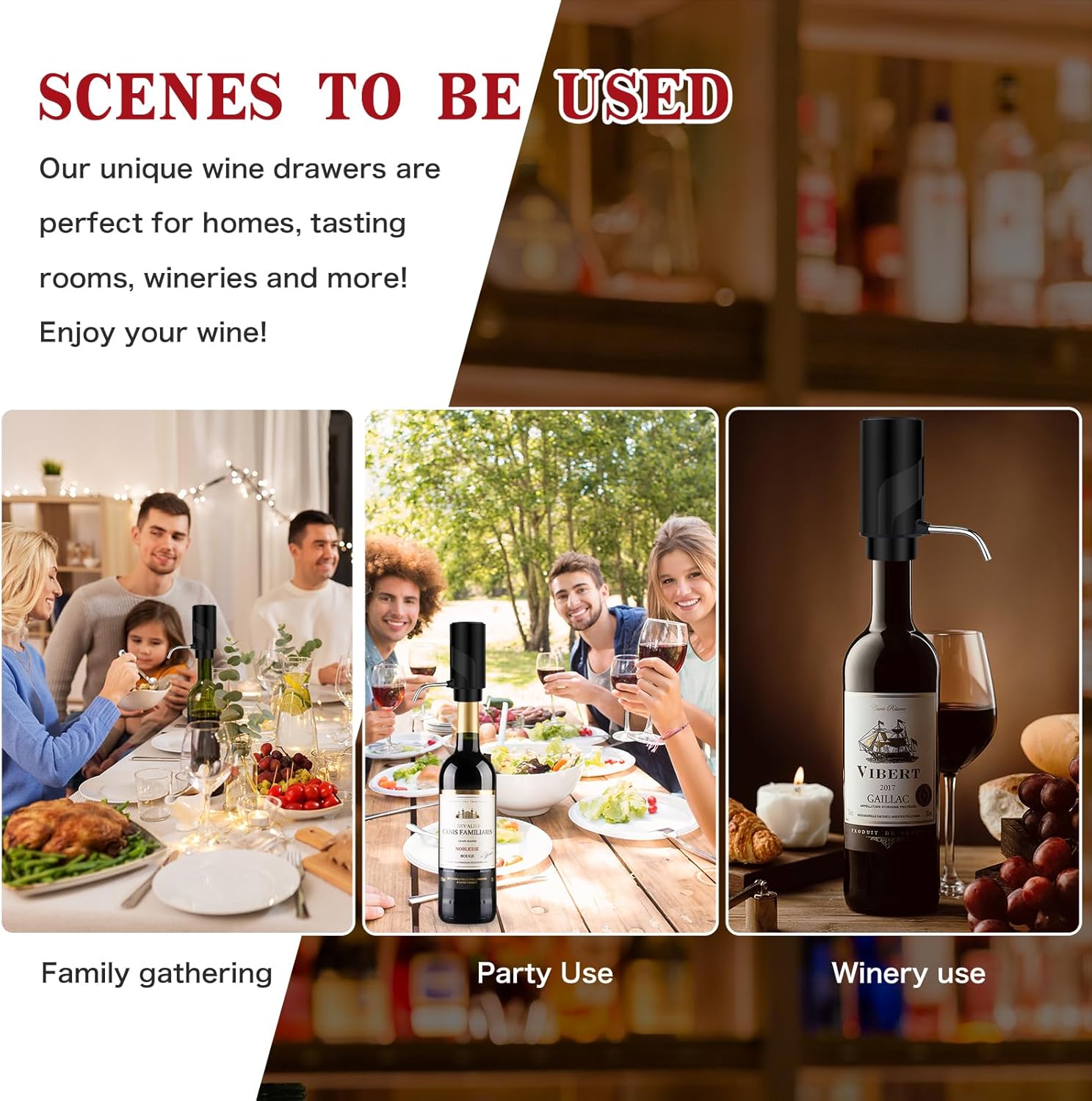 - 5.【Perfect gift】- We've adorned our electric wine aerator with elegant packaging makes it a perfect gift for wine enthusiasts and connoisseurs. Whether it's for a picnic, family gathering, wine soirée, birthday celebration, weddings, anniversaries, graduations, retirements, or business event. It offers the perfect gift choice to bring joy to your loved ones