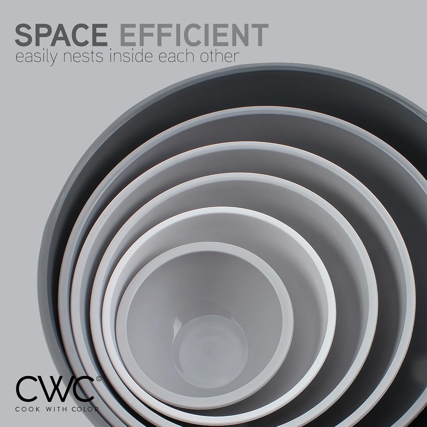 COOK WITH COLOR Mixing Bowls with Lids - 12 Piece Plastic Nesting Bowls Set includes 6 Prep Bowls and 6 Lids, Non Slip Bottom and Embossed Design - Microwave Safe (Grey)
