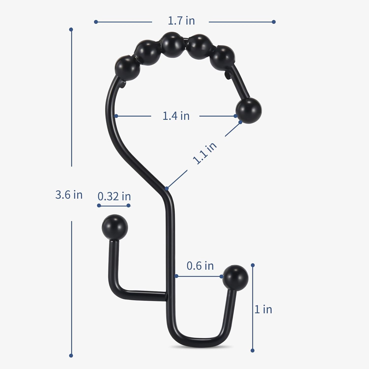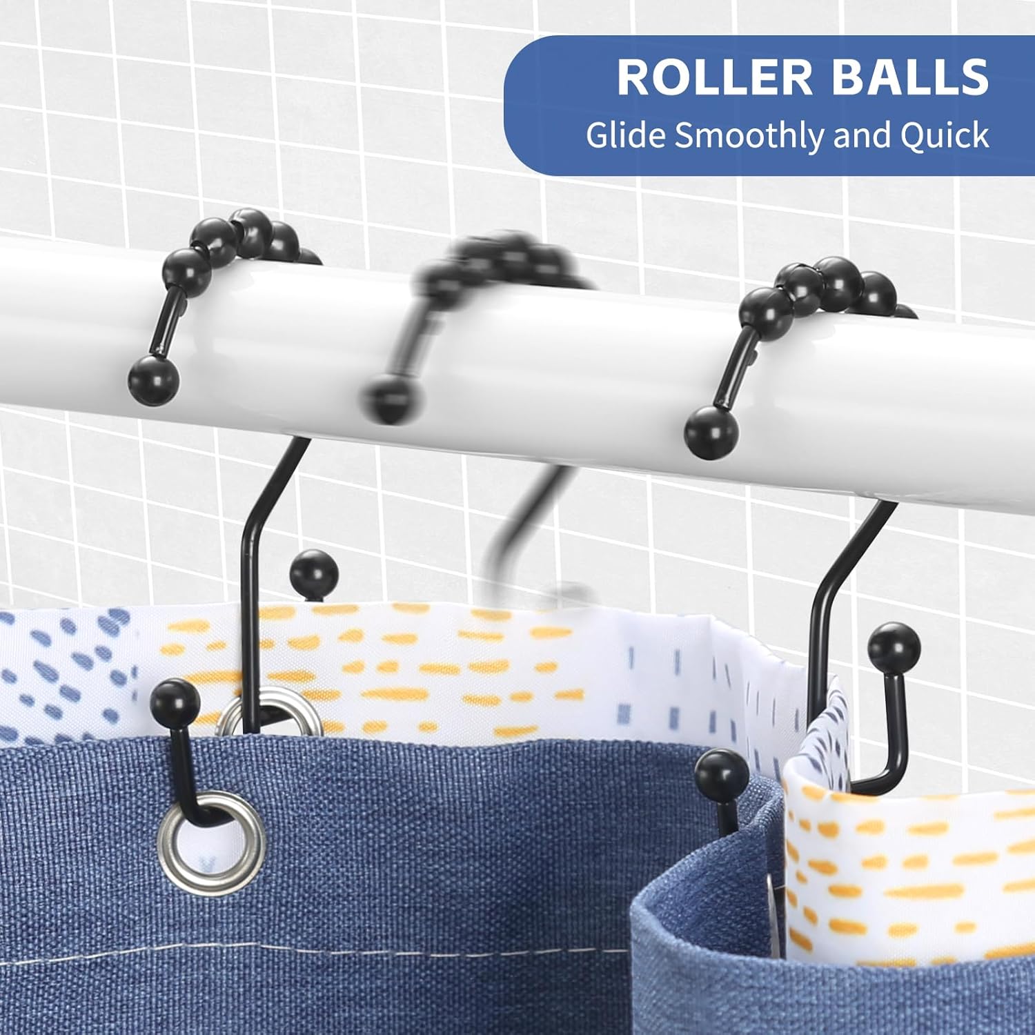 - SMOOTH SLIDING ROLLER BALLS: These black shower curtain hooks have 5 alloy roller balls on the top to ensure that the shower curtain rings slide quickly and smoothly without snagging or pulling. Reduce friction and avoid scratching the shower curtain rod.