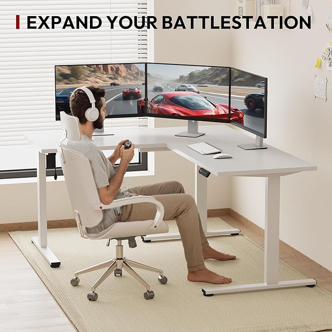 - Ergonomic L-Shaped Design: This desk's unique L-shape provides ample workspace, offering room for multiple monitors, accessories, and productivity essentials, promoting an efficient work environment.