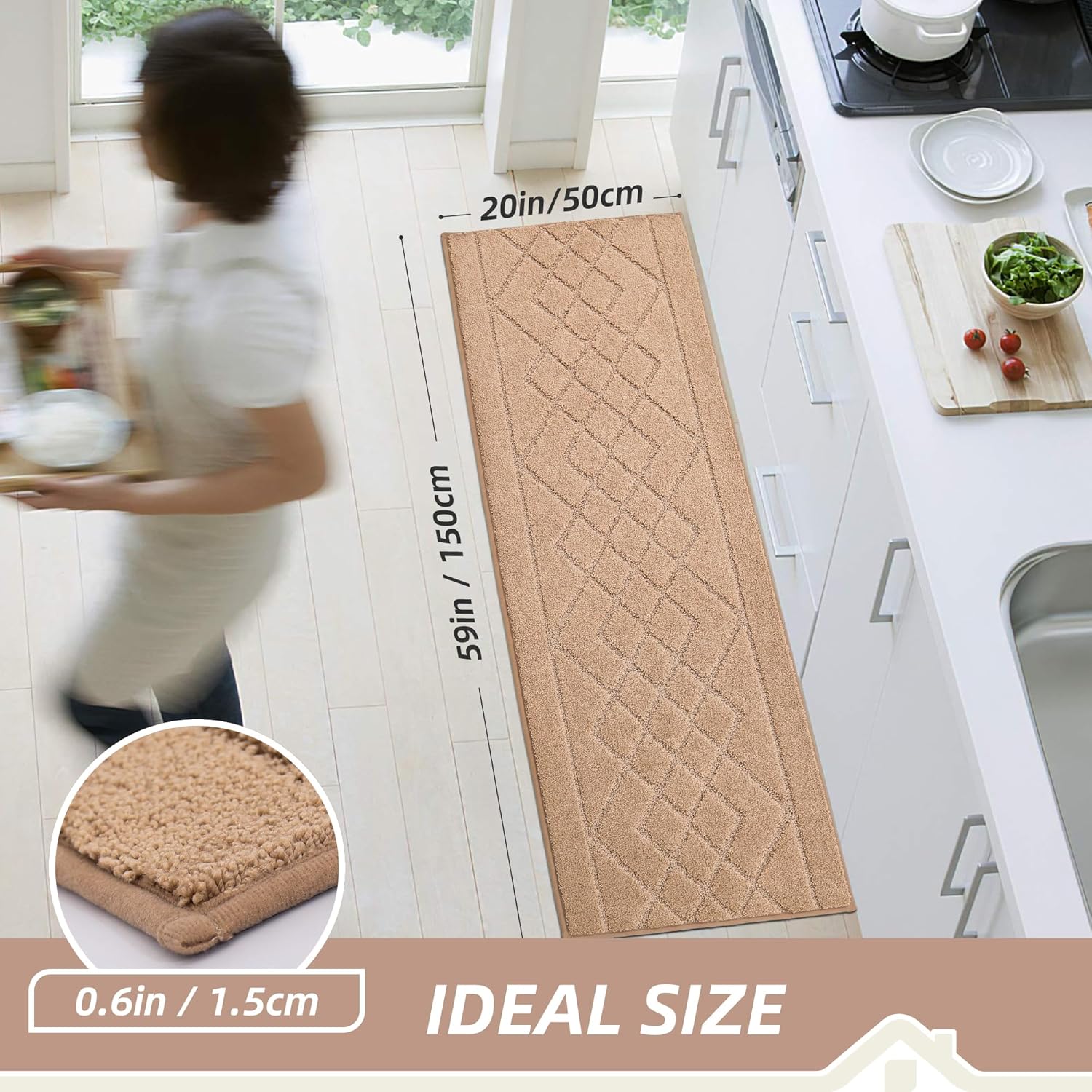 BEQHAUSE Kitchen Runner Rug 20”x59” Washable Non Slip Kitchen Mats for Floor Absorbent Soft Kitchen Rugs for Floor,Sink,Hallway,Laundry,Beige/Camel