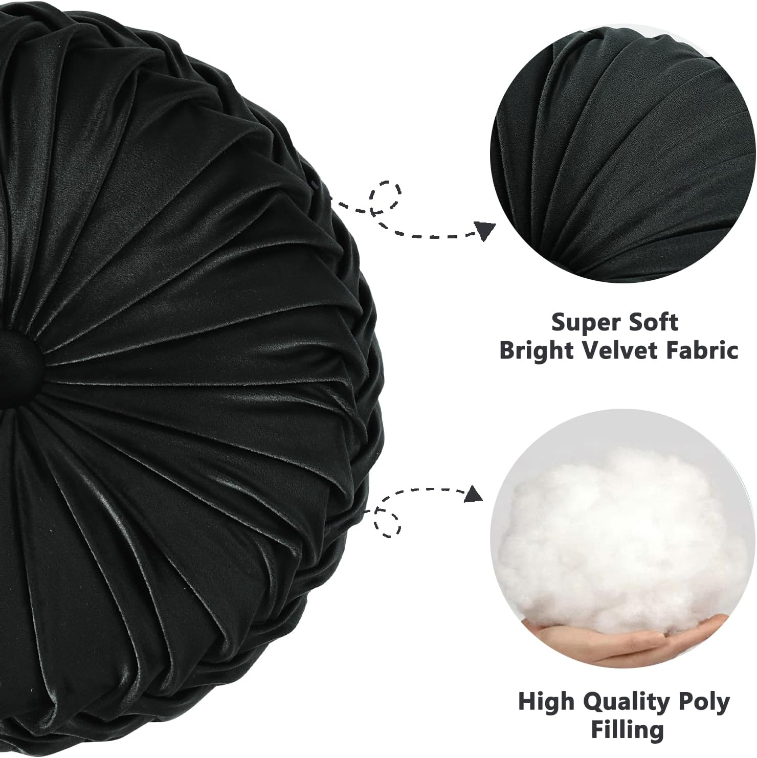 - EXQUISTIE HANDCRAFTED PLEATED DESIGN: This decorative round pillow with unique pumpkin shape is soft to the touch and has extra style with itβs pleated detailing. The intricately pleated design is sewed by hand, not by machine, which is more delicate and high-end. The elegant button in the middle ties together the complete look.