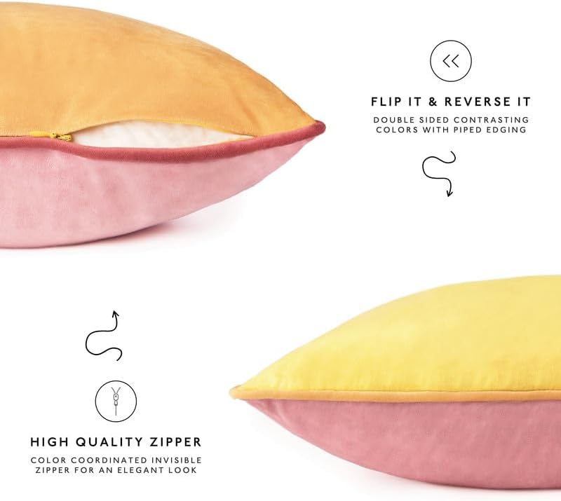MONDAY MOOSE Decorative Throw Pillow Covers Cushion Cases, Set of 4 Soft Velvet Modern Double-Sided Designs, Mix and Match for Home Decor, Pillow Inserts Not Included (16x16 inch, Yellow/Pink)