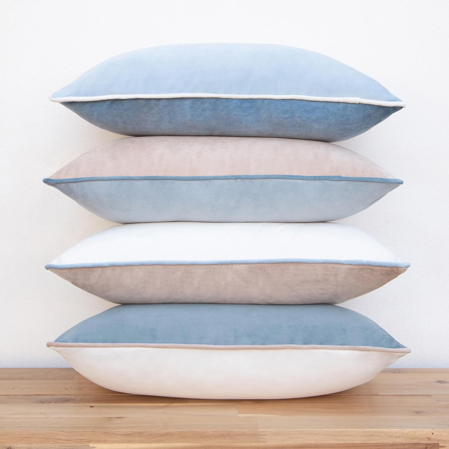- SET OF 4: Includes 1 stone blue velvet pillow + 1 light blue velvet pillow + 1 beige velvet pillow + 1 cream velvet pillow
