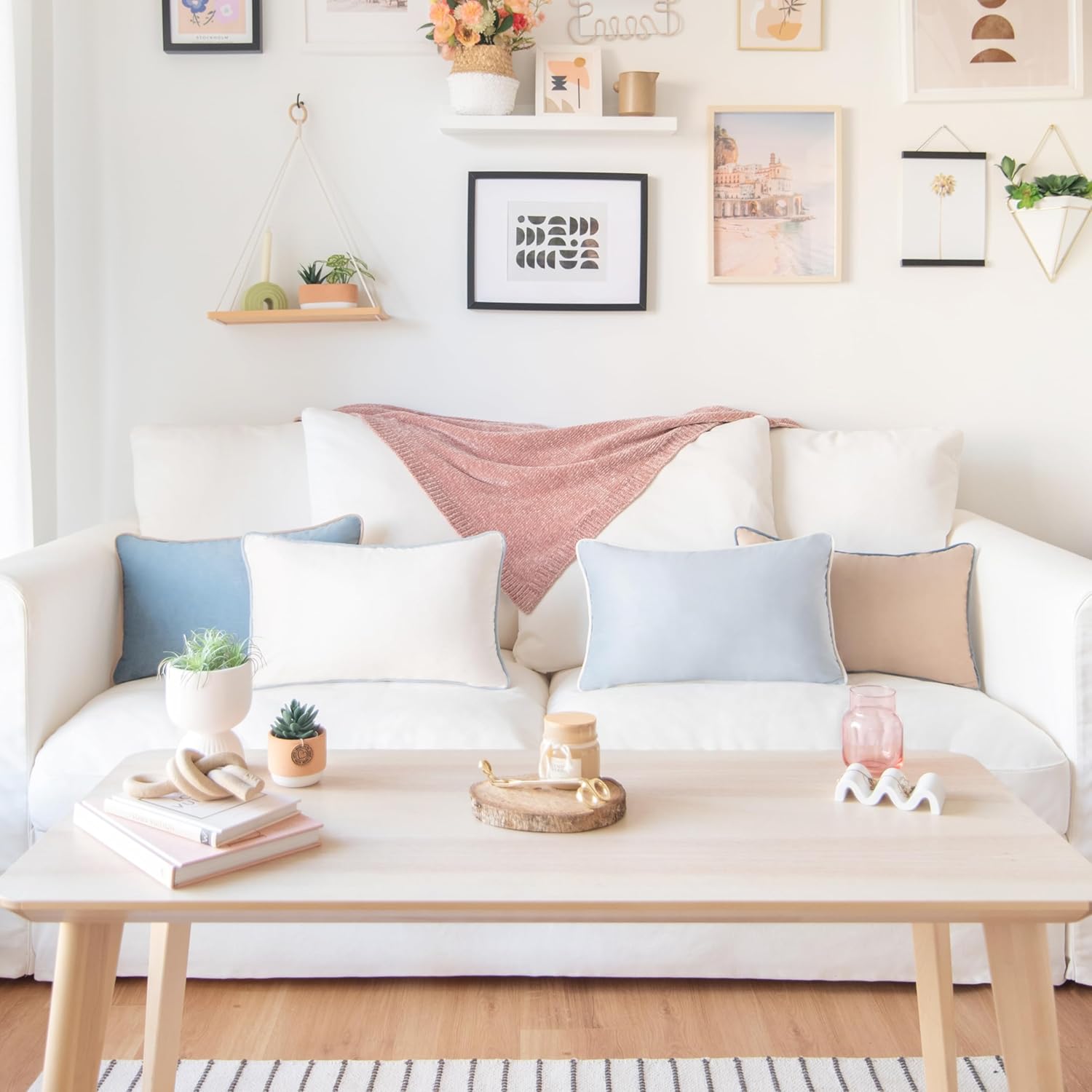 MONDAY MOOSE Decorative Throw Pillow Covers Cushion Cases, Set of 4 Soft Velvet Modern Double-Sided Designs, Mix and Match for Home Decor, Pillow Inserts Not Included (12x20 inch, Beige/Light Blue)