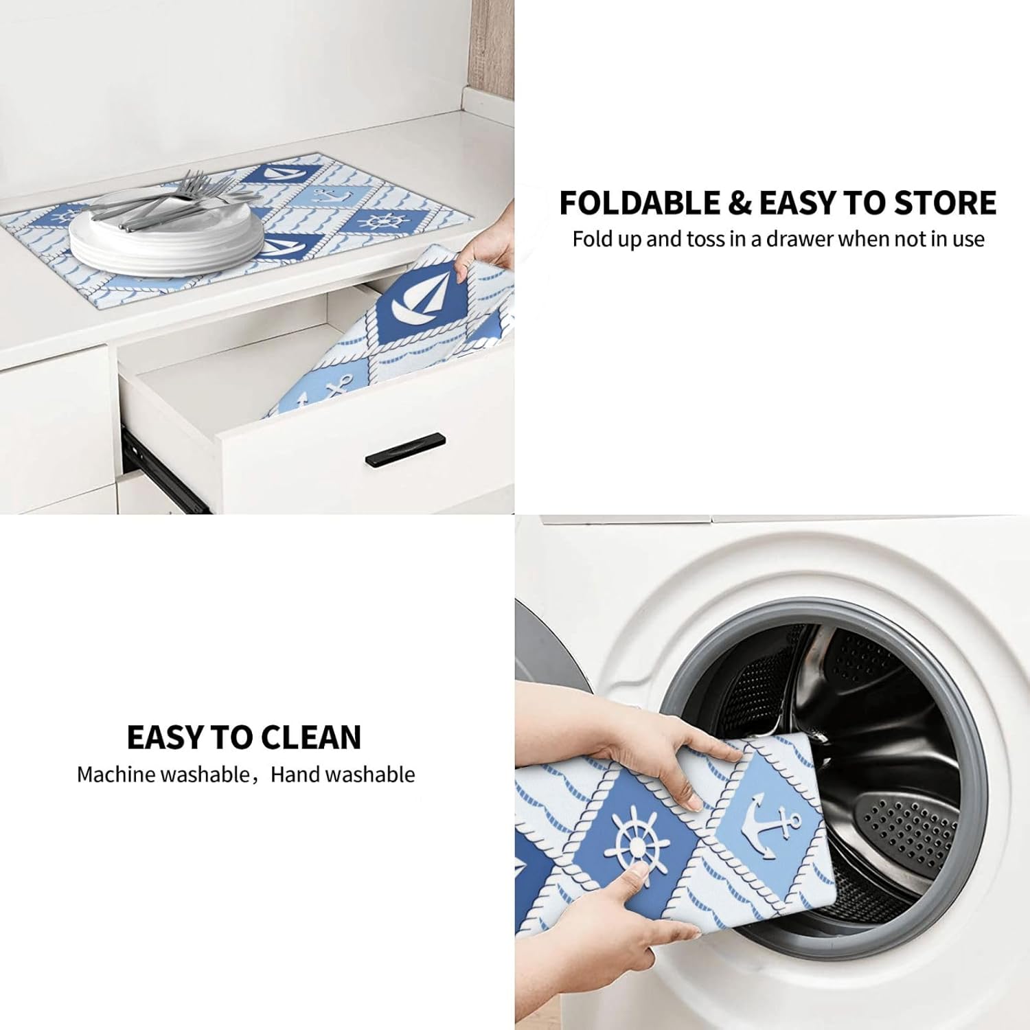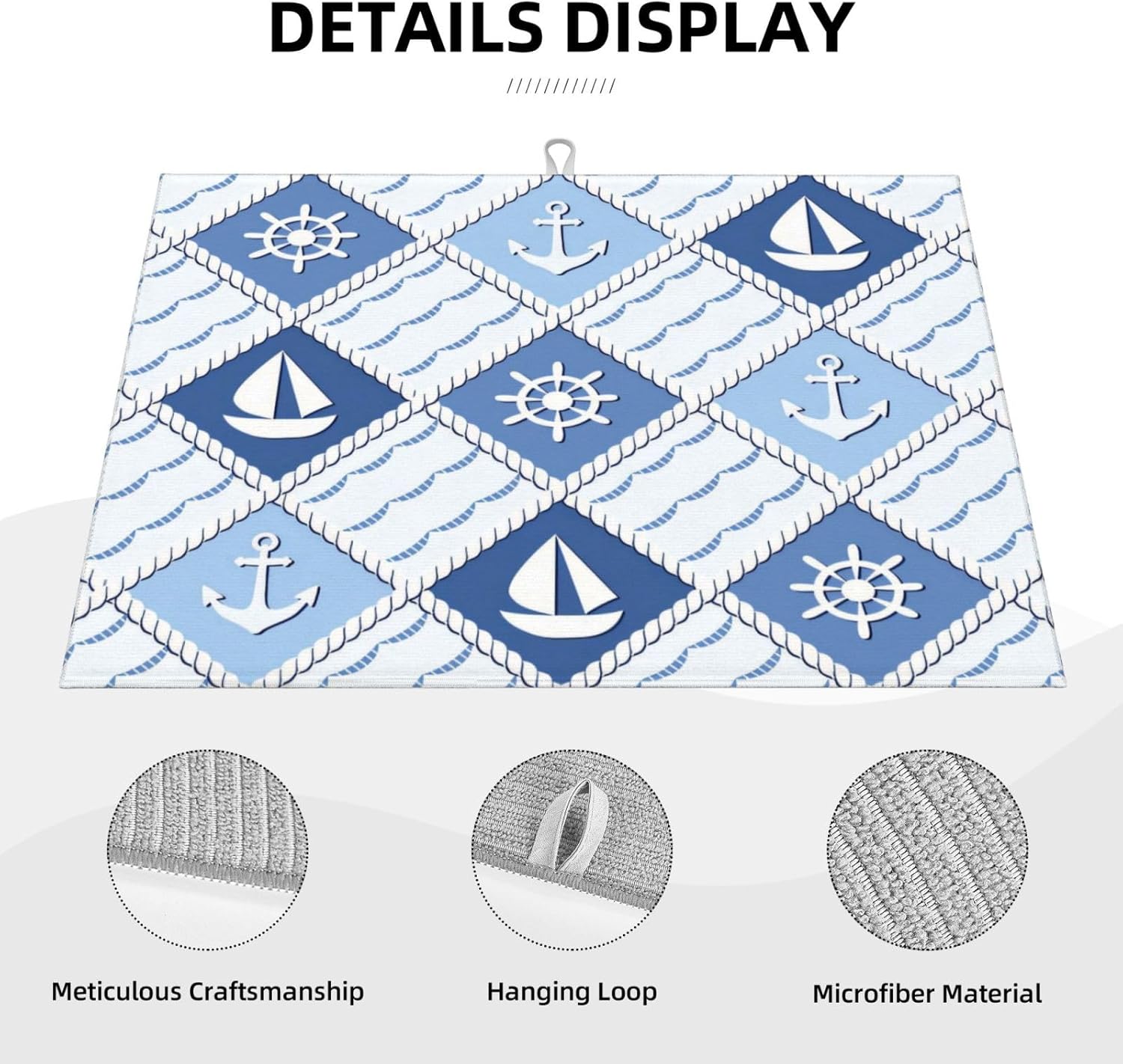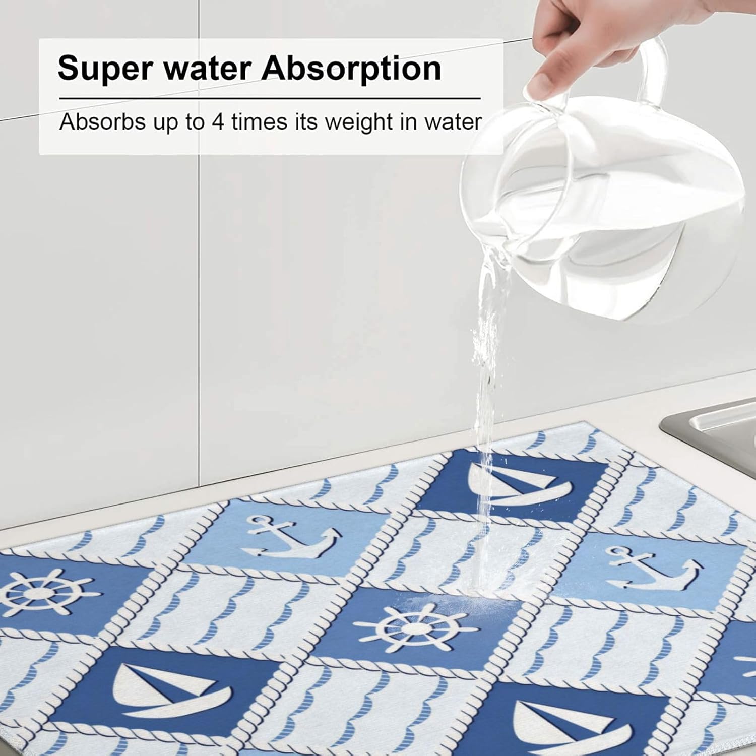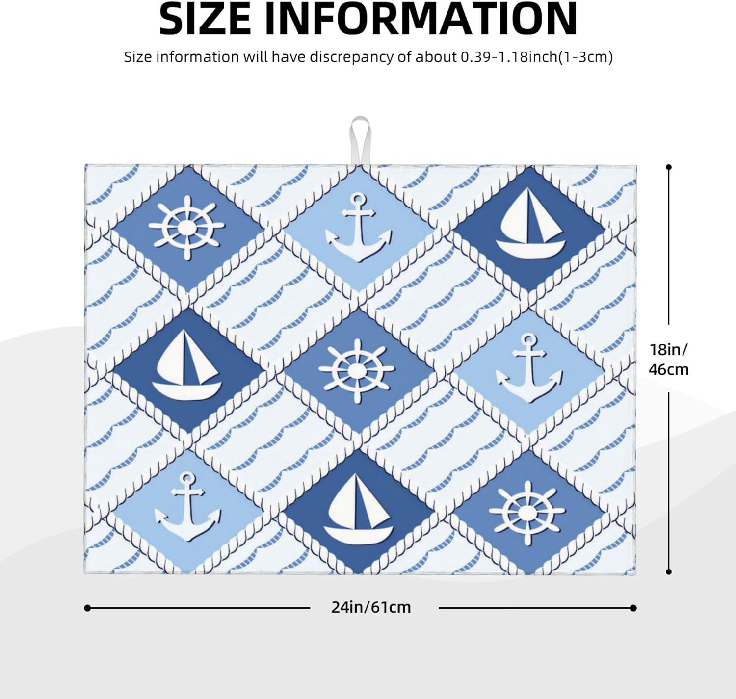 Vintage Nautical Sailboat Anchor Dish Drying Mat 18x24 For Kitchen Counter Absorbent Microfiber Dishes Pad Dish Drainer Rack Mats Fast Dry Kitchen Accessories
