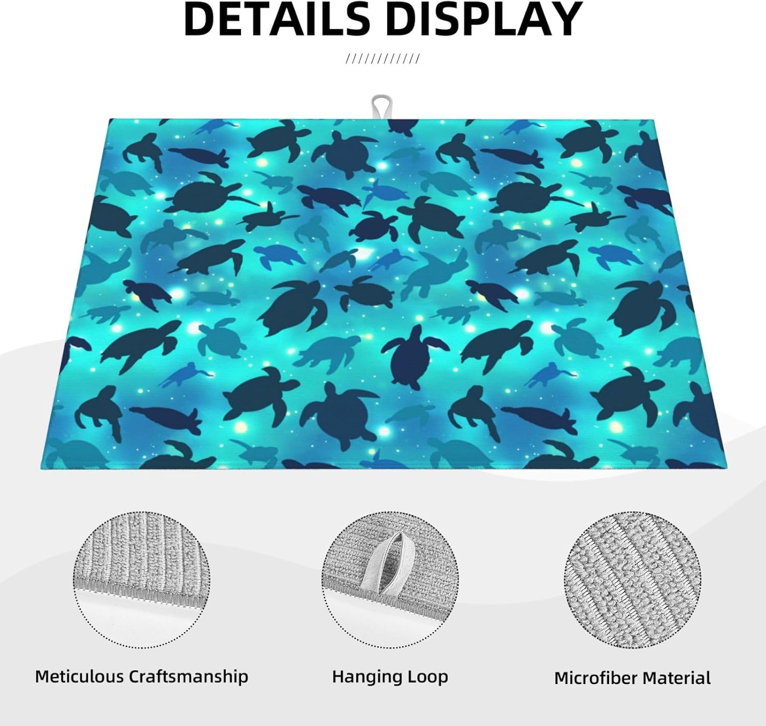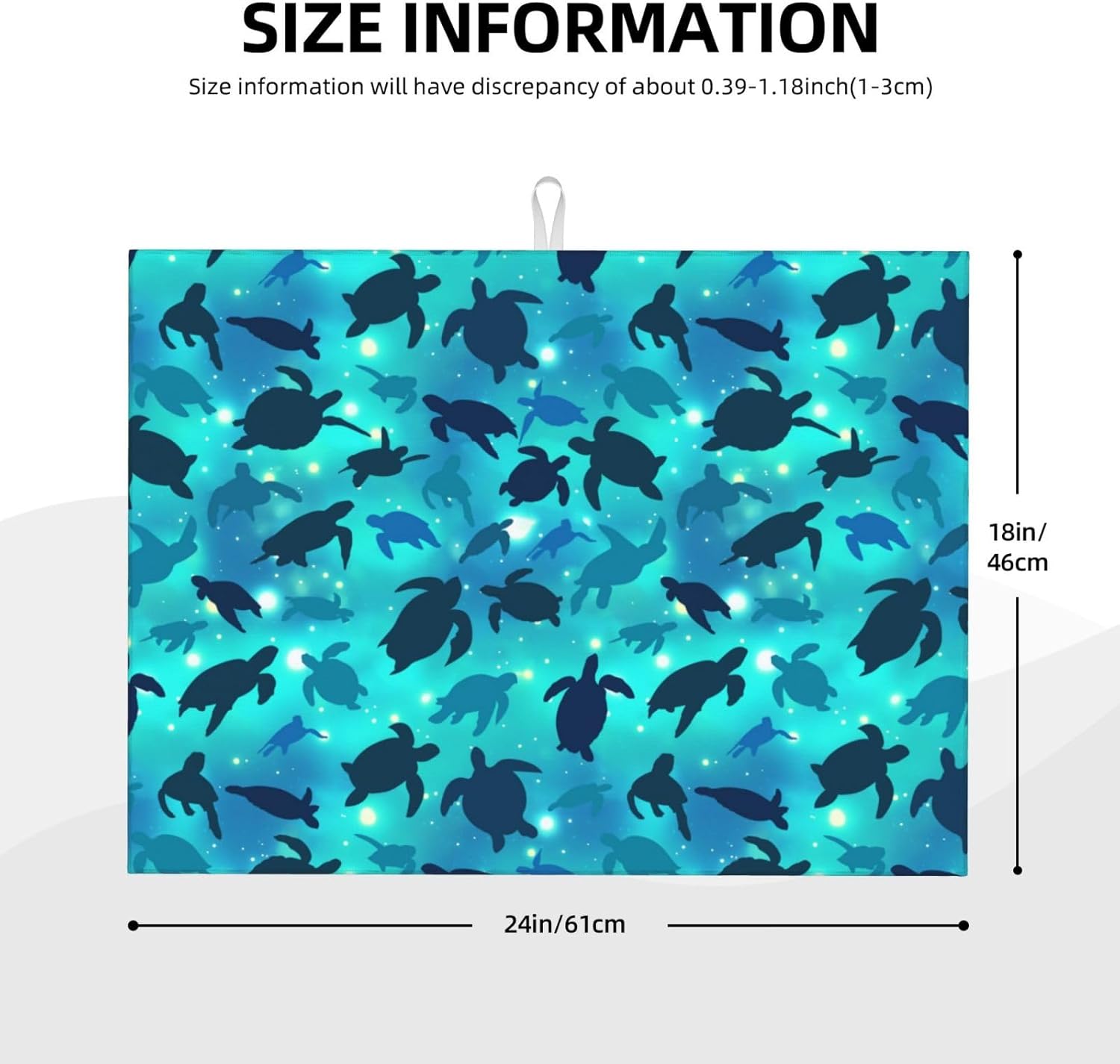 Sea Turtles Blue Dish Drying Mat For Kitchen Counter Absorbent Microfiber Dishes Pad Dish Drainer Rack Mats Fast Dry Reusable Washable Large 18"x24"