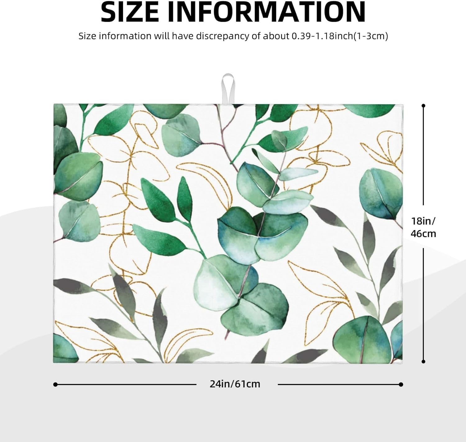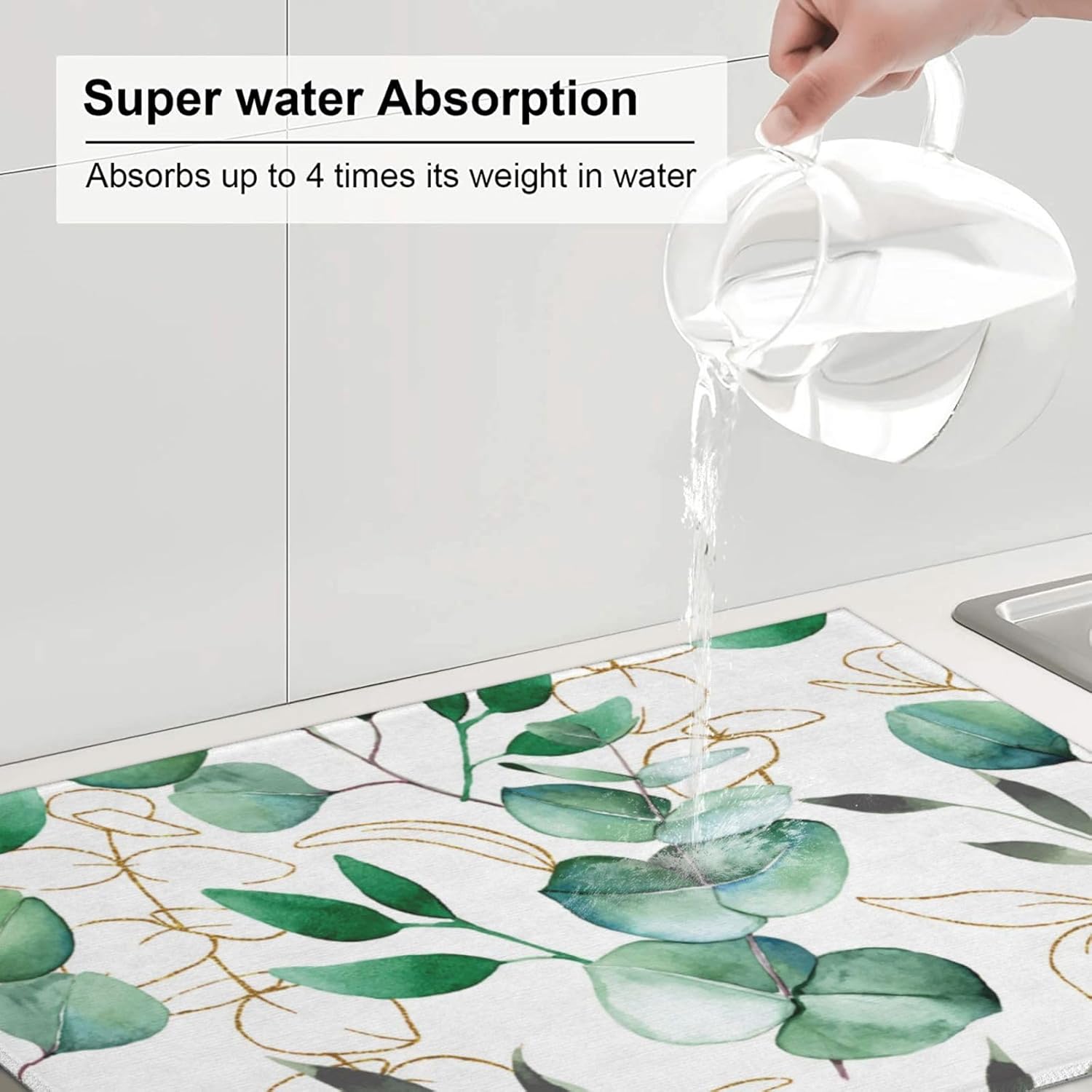 Green Leaves Dish Drying Mat 18x24 For Kitchen Counter Absorbent Microfiber Dishes Pad Dish Drainer Rack Mats Fast Dry Kitchen Accessories