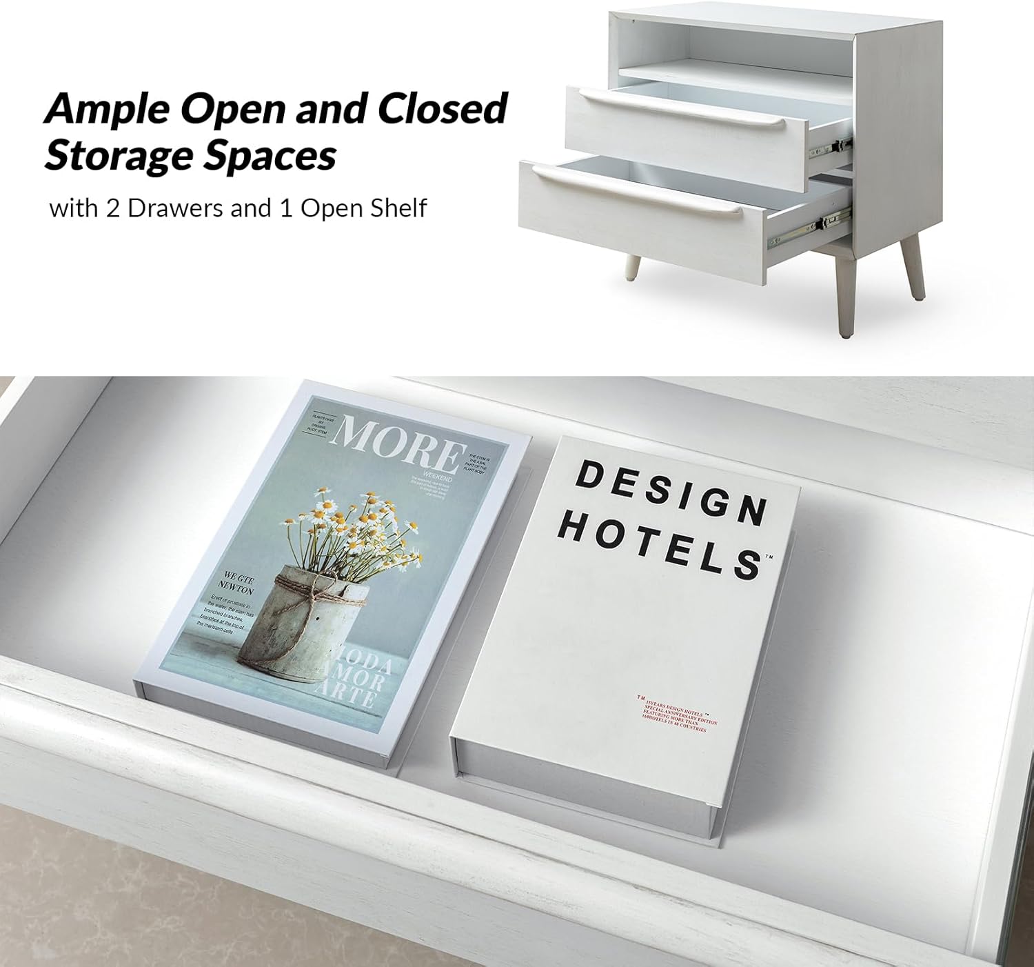 - AMPLE STORAGE SPACE - The bedside table has a storage space of 2 drawers and 1 open self, which is spacious enough to help you organize your room and meet different storage needs. You can place frequently used items on the table or on the open shelf, such as alarm clocks, mobile phones, or magazines, so that you can easily access them at any time.