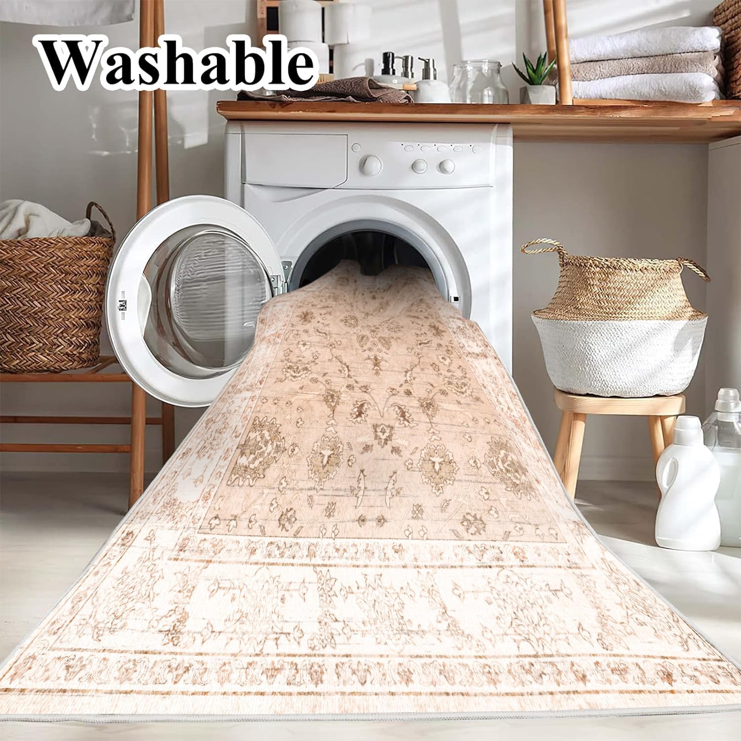 - Machine Washable: The vintage rug can be machine washed, vacuumed, broom or rag cleaned. Rug fold wrappers may temporarily wrinkle, it is recommended to roll the rug in the opposite direction to give the creases time to flatten and set