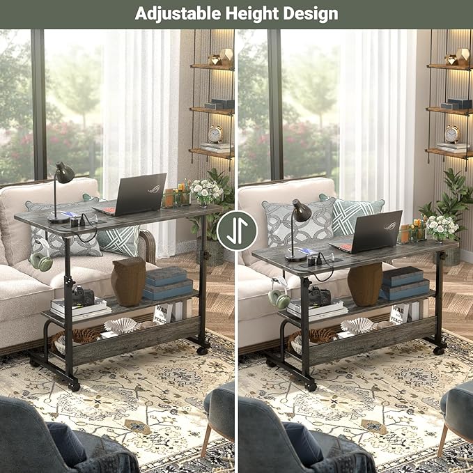- Height Adjustable Standing Desk with Power Outlets: Besiost rolling standing desk equipped with 2 AC outlets and 3 USB ports and 6.5ft long power supply cord provide the charging convenience for phone, laptops, AirPods, etc. Velcro tape make your device's cords tidy.