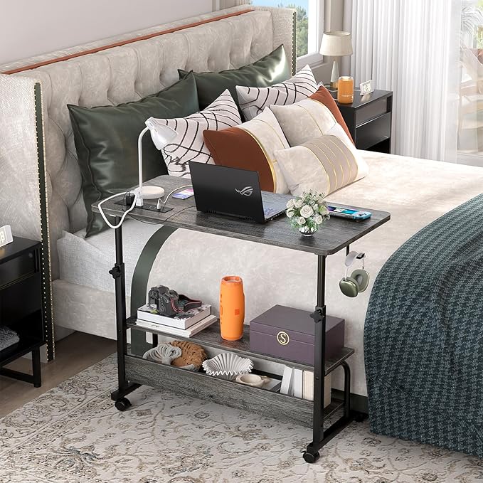 - Height Adjustable Design & Multi-Functional: The height adjustable of mobile standing desk between 27.5-41 inches, you can adjust to height as you need to reduce the headache, neck pain. You can move this C-shaped design adjustable laptop desk to living room, bedroom, study, small space for work or leisure.