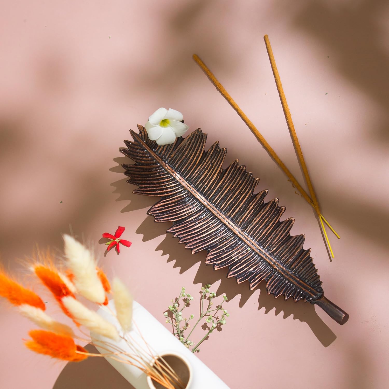 Raajsee Incense Holder Set With Nag Champa Sticks 15gm, Leaf Stick Burner, Brass Burner, Modern Holder for Yoga, Meditation, Home Decor - Size 10x4 Inches Copper