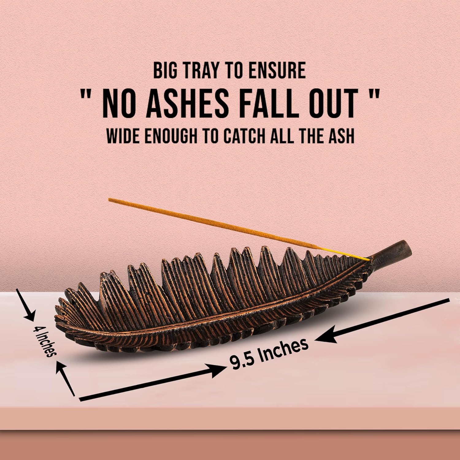 - FUNCTIONAL INCENSE HOLDER : The hole on the leaf's tail will make the sticks only towards to one angle, ensure the metal incense holder will catch all the ashes, has a Appropriate size, it's practical & decorative.Size 10x4 Inches
