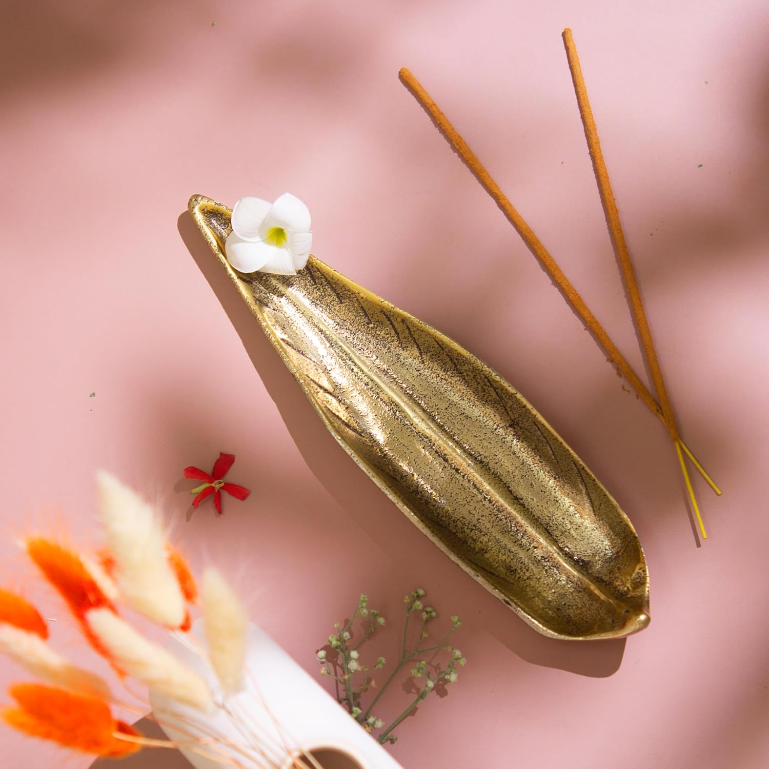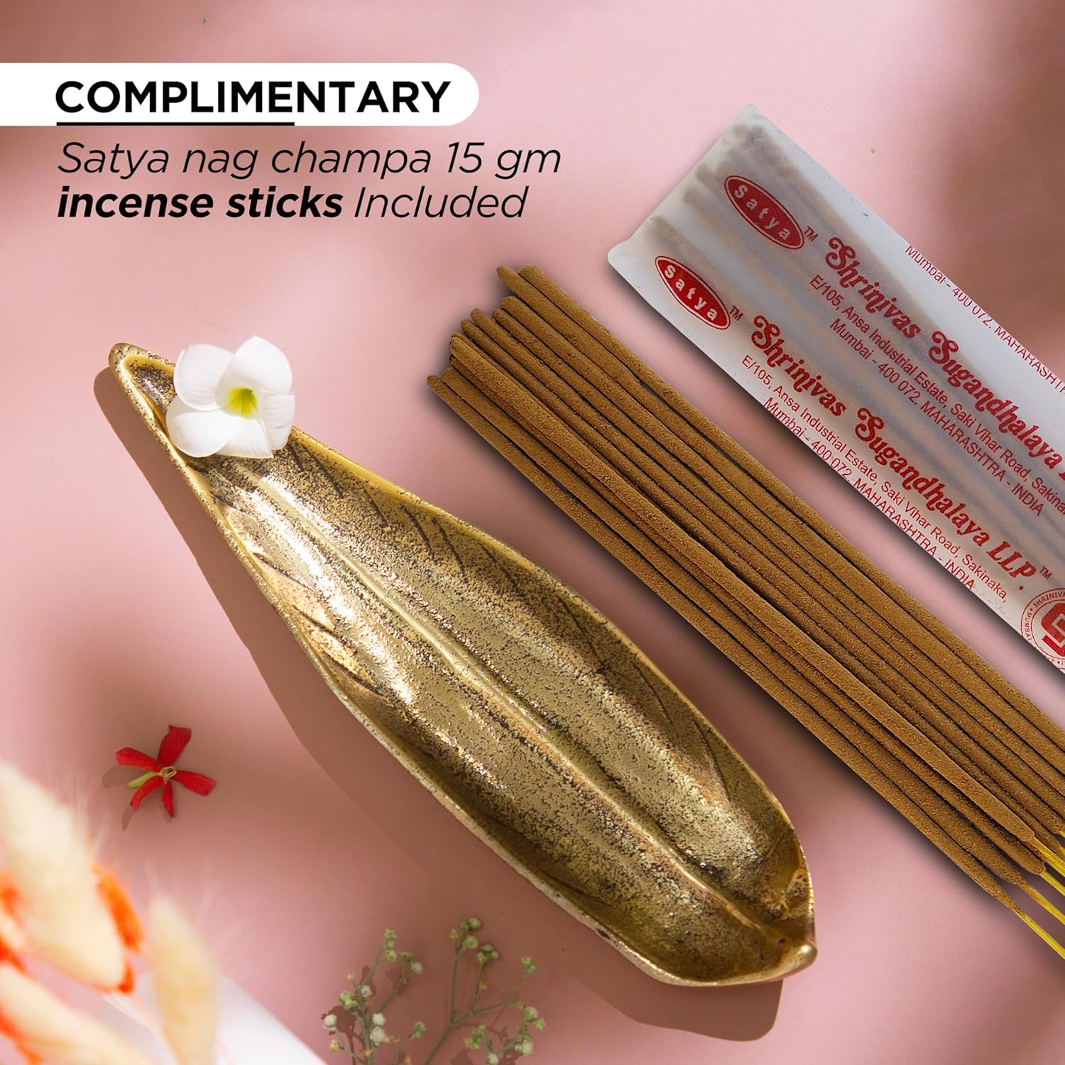 Raajsee Incense Holder Set with Nag Champa Incense Sticks 15gm,Curve Leaf Incense Stick Burner, Brass Incense Burner,Modern Stick Incense Holder for Yoga, Meditation,Home Décor Size 10x3 inch