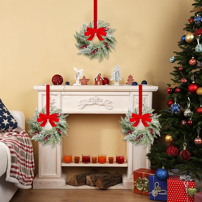 - Versatile to Use: the Christmas mini wreaths farmhouse decorations with ribbons are adjustable, which can be placed somewhere you like, ideal for your kitchen cabinets, front door, porch, hallway, windows, wall, garden, patio, fireplace, chairs, Christmas tree and more Note: the ribbon needs to be woven into a bow separately; It is normal for customers to receive a roll of ribbon and can be assembled and matched according to their own situation