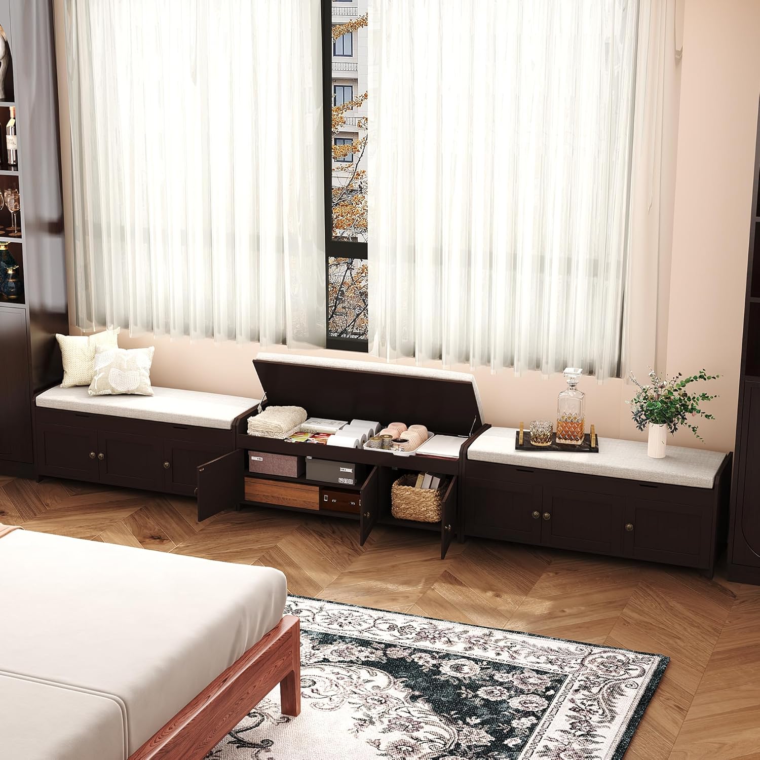 HOMEFORT 41.3" Shoe Bench with Lift Top Storage, Entryway Bench with Cushioned Seat, Wooden End of Bed Bench, Shoe Cabinet Bench with Hidden Storage Space, for Bedroom, Hallway,Espresso