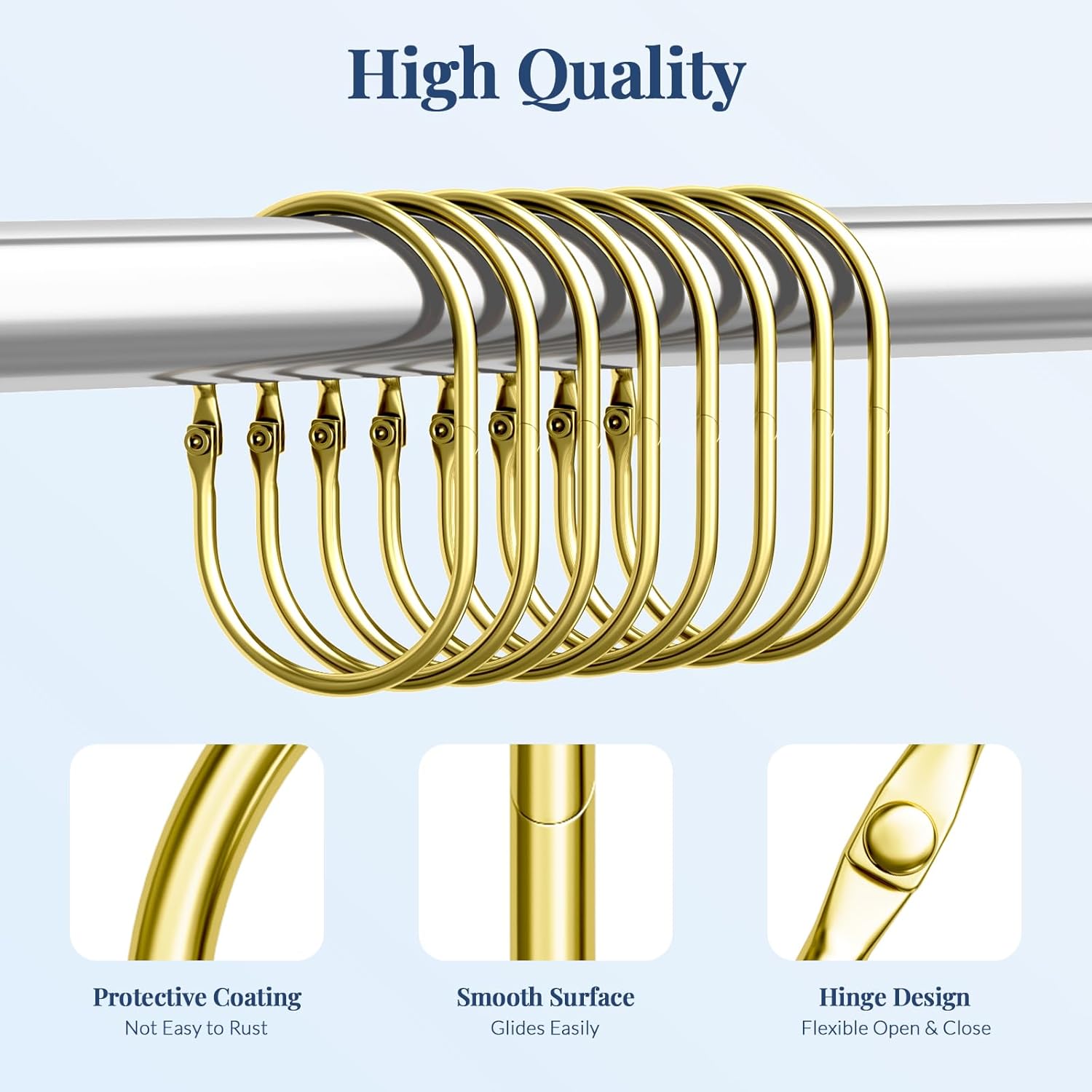 - Smooth gliding & less tangled: No snagging, no effort, no hassle. These metal shower curtain rings slide effortlessly over the shower rod. The simple design of shower curtain hooks rust proof can prevent them from getting stuck together