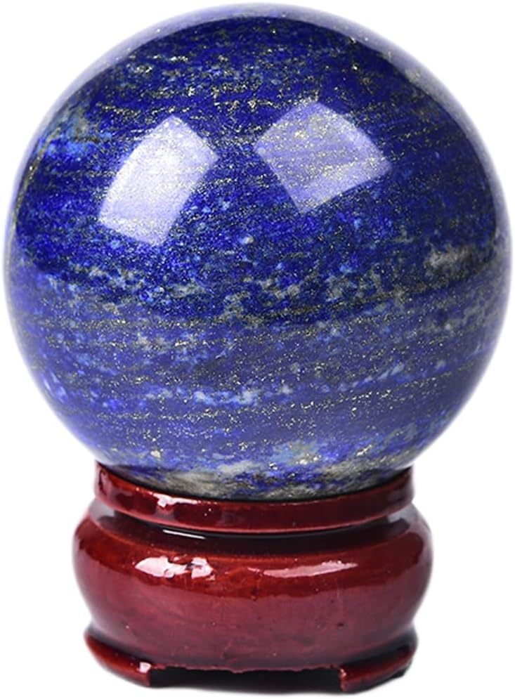 - 【 Lapis Lazuli Crystal Sphere Ball】:Size:50-60mm,Material:Blues and Golden Lapis Lazuli Stone.Quantity:1Pce,with Free base,Naturally mined crystals,retaining their natural texture,are carved with the Sphere shape.It stands out with a gentle and attractive crystal glow