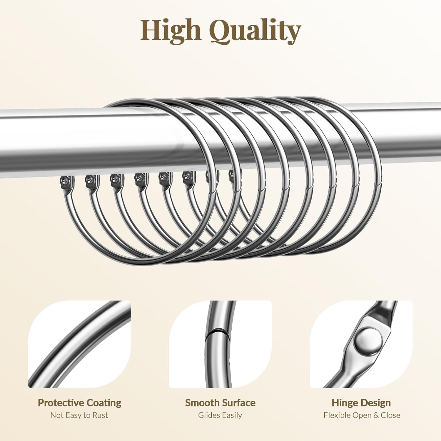 - Smooth sliding & less tangled: The smooth surface of these silver shower curtain hooks ensure they glide easily on the shower rod. The simple design of metal shower curtain rings prevents them from getting stuck together as they slide.