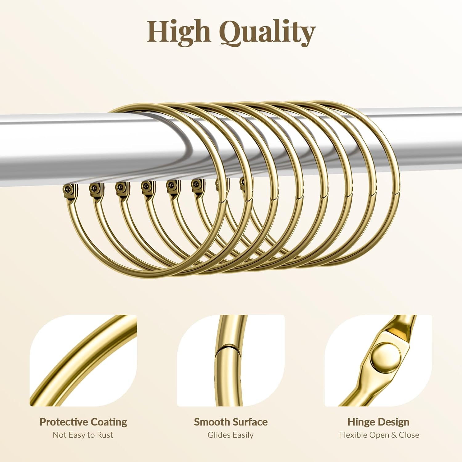 - Smooth sliding & less tangled: The smooth surface of these gold shower curtain hooks ensure they glide easily on the shower rod. The simple design of metal shower curtain rings prevents them from getting stuck together as they slide.