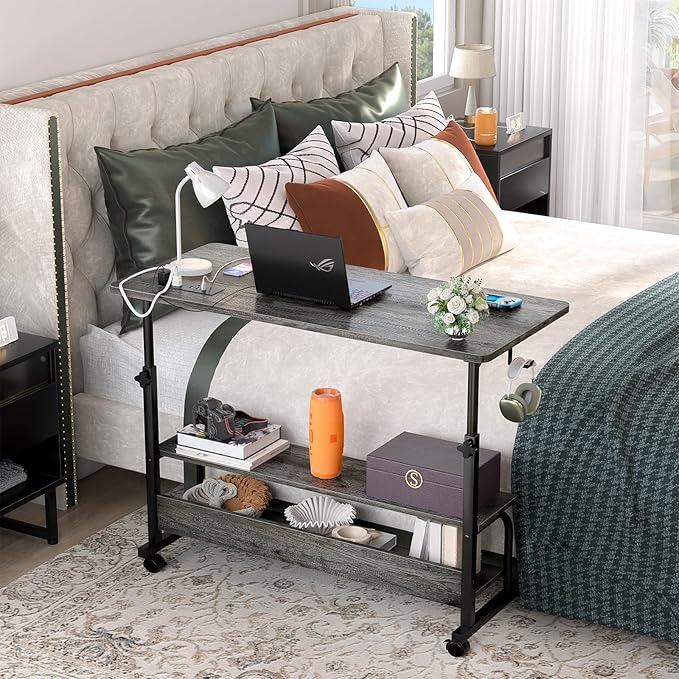- Height Adjustable Design & Multi-Functional: The height adjustable of mobile standing desk between 27.5-41 inches, you can adjust to height as you need to reduce the headache, neck pain. You can move this C-shaped design adjustable laptop desk to living room, bedroom, study, small space for work or leisure.