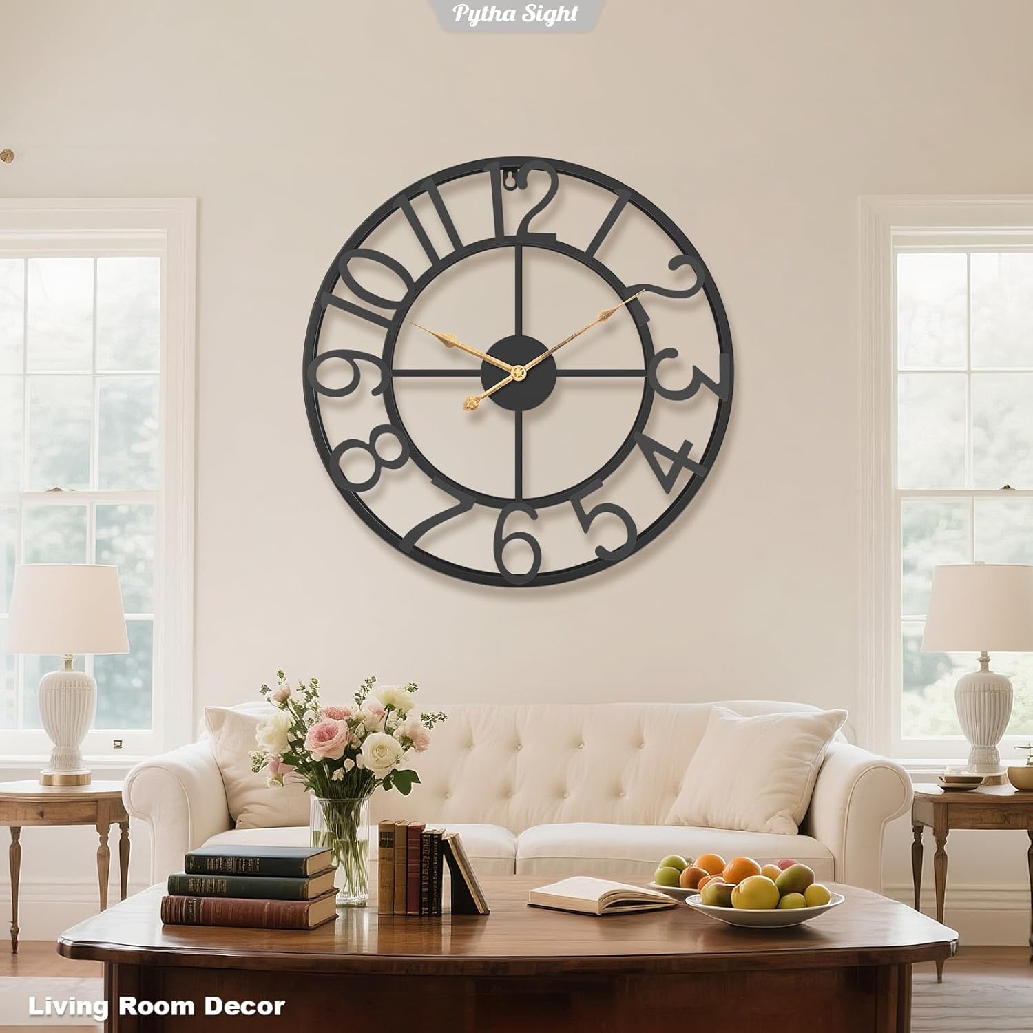 - 【Our Promise and Service】You will receive an Pytha Sight 14 inch large farmhouse wall clock, hook,and high quality professional customer pre-and post-sales service.If the large black and gold wall clock does not work,please find us.