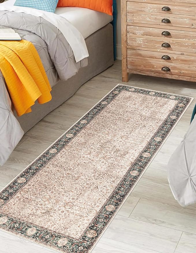 Keen Home Design 2x12 Rug - Machine Washable Runner Rug with Non-Slip Backing, Ideal for Hallway, Entryway, Kitchen, Laundry Room - Vintage, Easy Clean, Durable, Low Pile - (2'6" x 12')