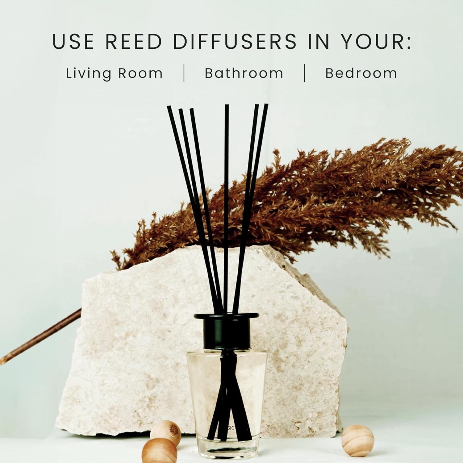 - LUXURY AESTHETIC FOR ANY ROOM: The tasteful design of our glass reed diffusers for home features classy black diffuser reeds & an elegant transparent holder that easily fit the aesthetics of any room.