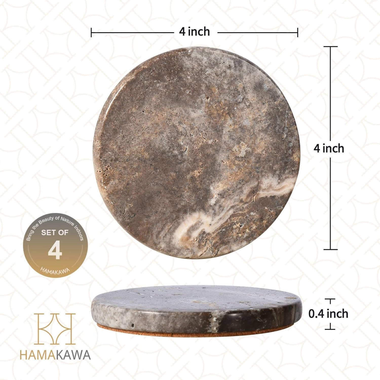 - Natural Travertine Marble: Made from high quality travertine, the naturally occurring patterns, textures and holes in the surface are preserved, making each coaster unique. These stone coasters retain the beauty of nature and will be an elegant addition to your tabletop decor