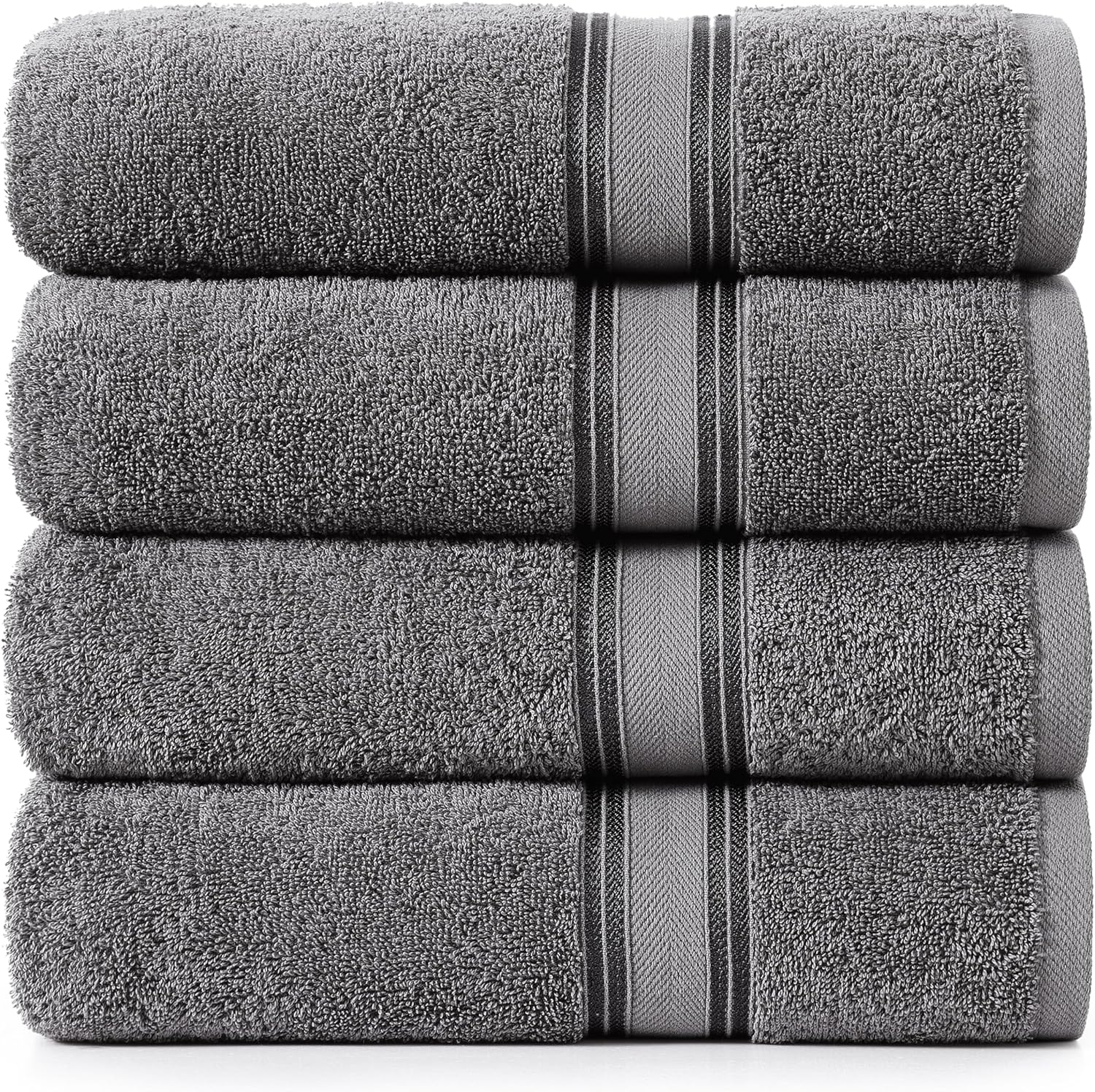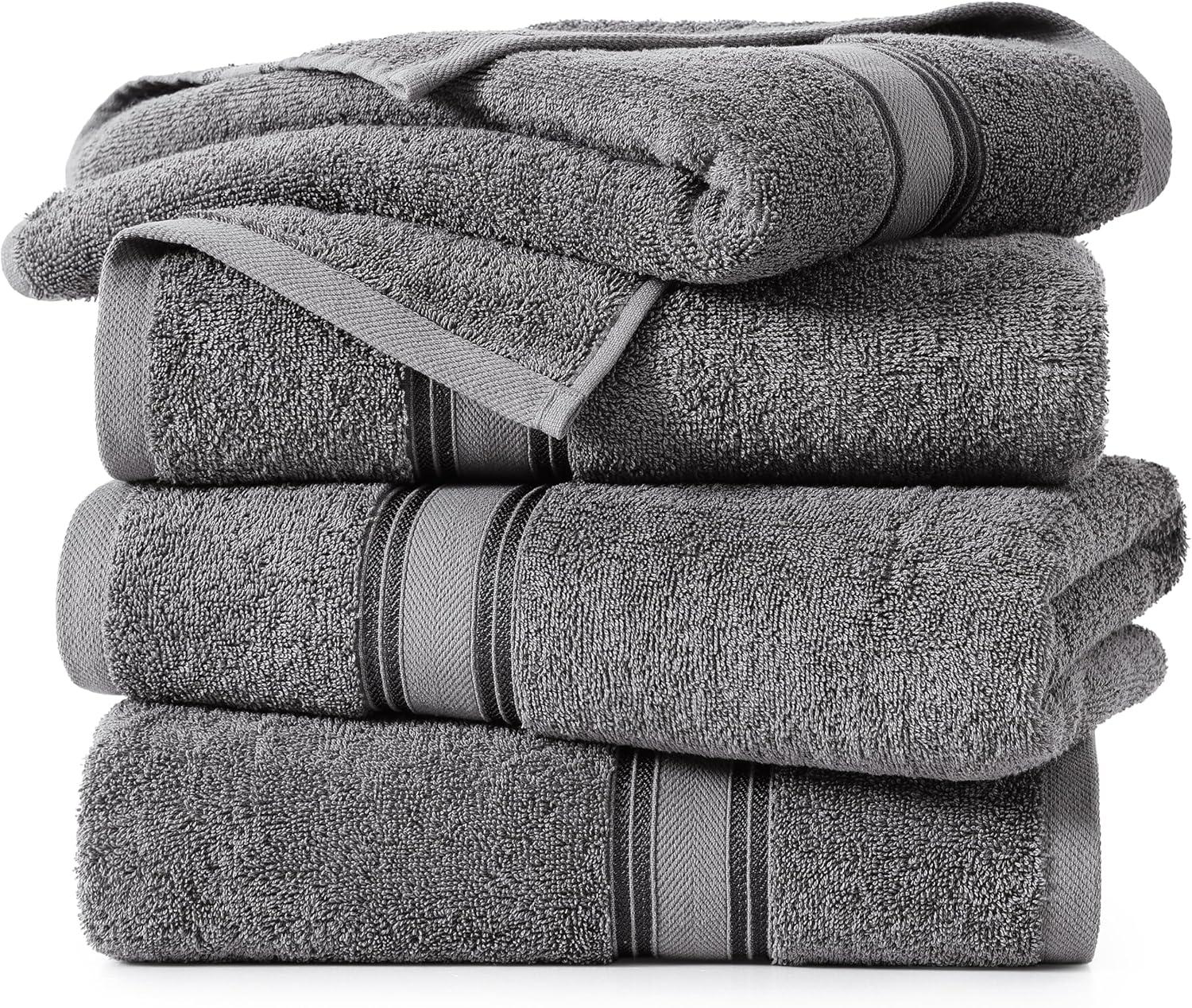 LANE LINEN 100% Cotton 4 Pack Bath Towels Set (30"x60") - Zero Twist, Large Cotton Towels for Bathroom - Quick Dry, Soft & Absorbent Bath Towel Set - Remains Soft After Multiple Washes - Cool Grey