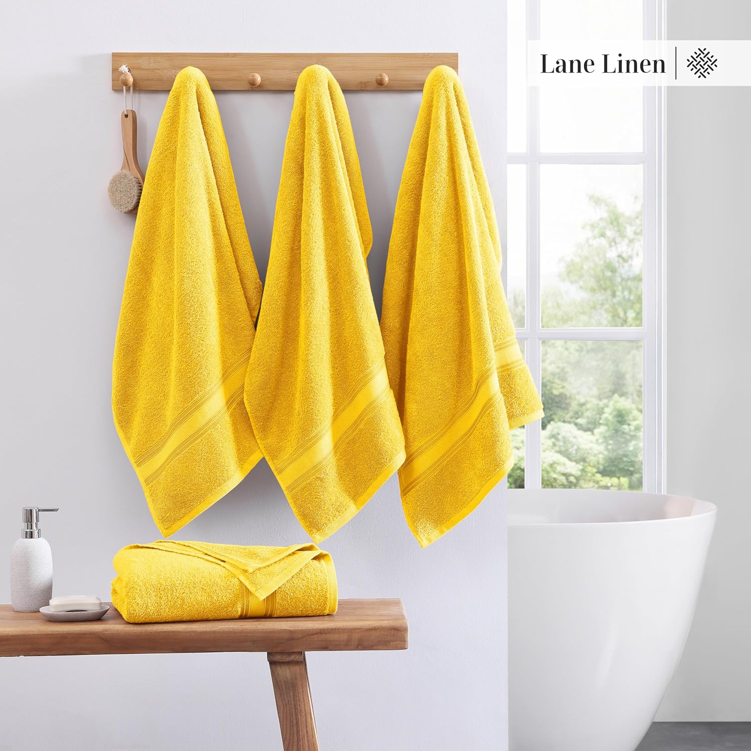 LANE LINEN 100% Cotton Bath Towels Pack of 4 (28"x54") - Zero Twist, Mercerized Cotton Bathroom Towel Set - Quick Dry, Extra Soft & Absorbent Yellow Bath Towels - Suitable for All Skin Type - Mimosa