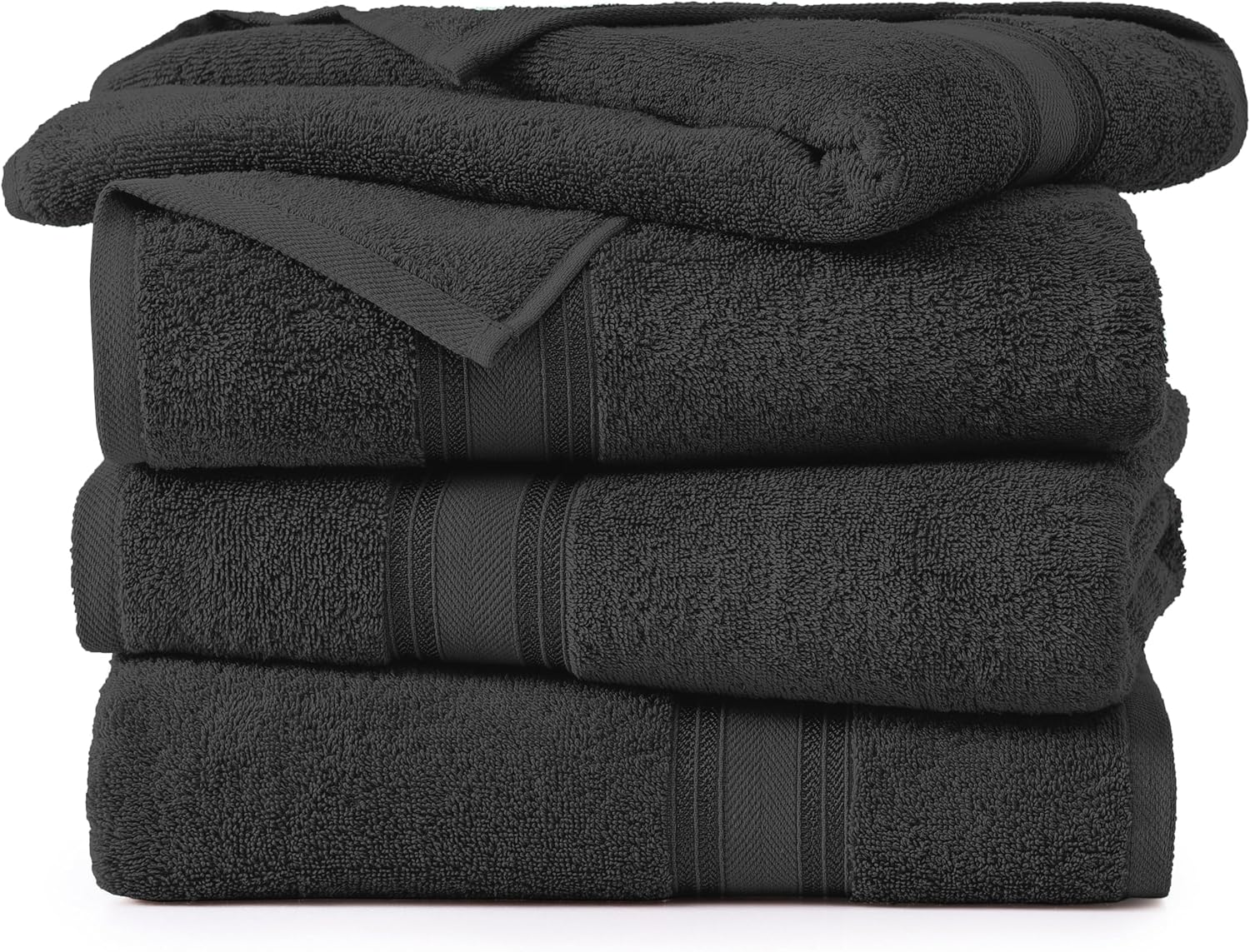 LANE LINEN 100% Cotton Bath Towels 4 Pack (28"x54") - Zero Twist, Mercerized Cotton Large Towel Set for Bathroom - Quick Dry, Soft & Absorbent Large Bath Towel Set - Oeko Tex Certified - Black Towels