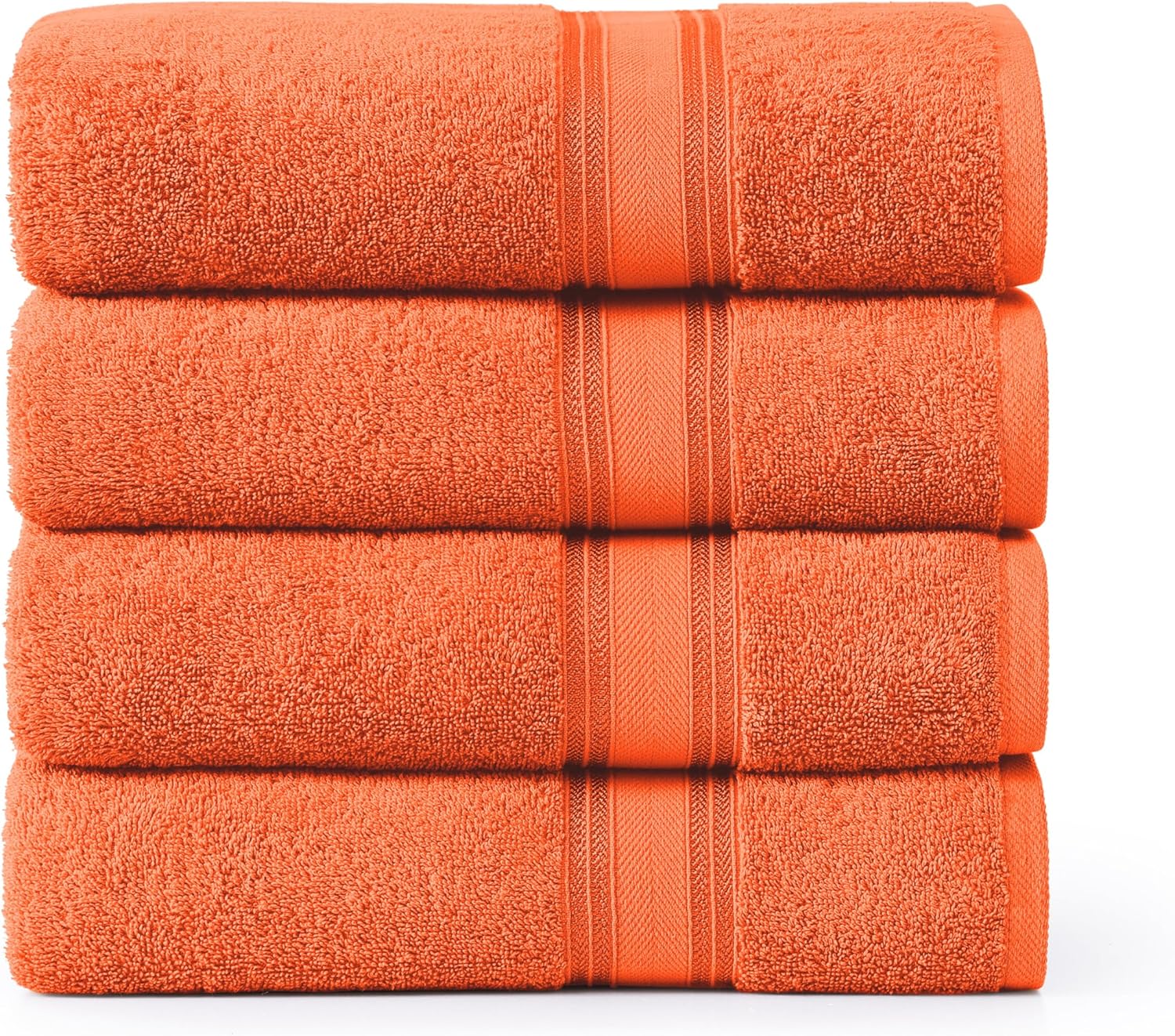 Lane Linen 100% Cotton 4 Pack Bath Towels (28"x54") - Zero Twist, Mercerized Cotton Towel Sets for Bathroom - Quick Dry, Soft & Absorbent Large Bath Towel Set - Salon, Spa & Hotel Quality - Tiger Lily