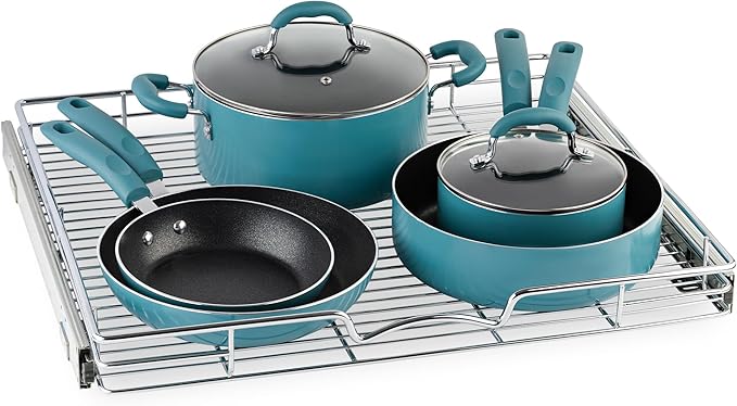 - HIGH QUALITY: Made of durable metal with chrome finish the pull out shelf for kitchen cabinet is simple and easy to install. Designed to fit any style of cabinetry and easy to clean.