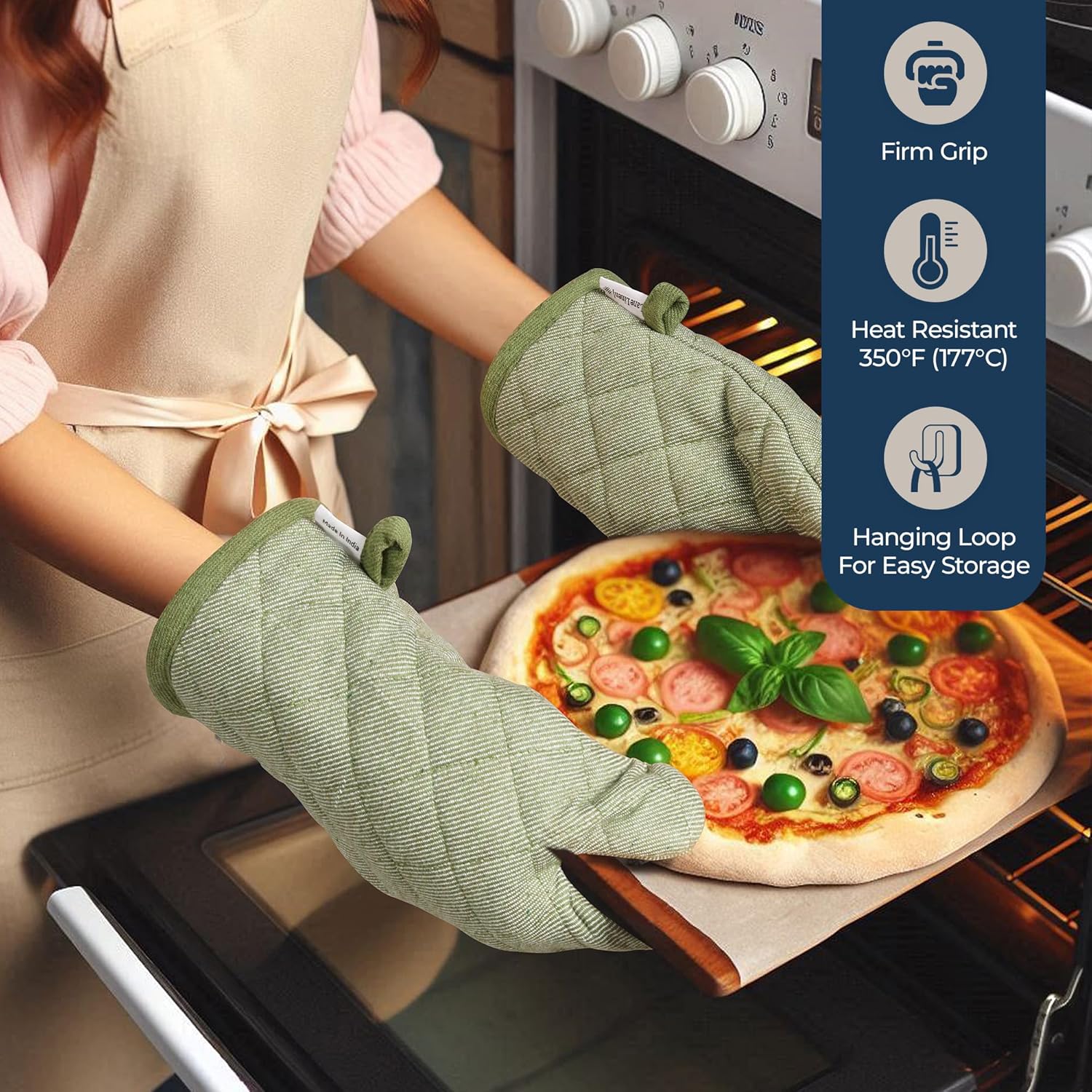 - Heat-Resistant Heroes: Our oven mitts set and potholders, lined with quilted cotton, bravely withstand up to 350°F (177°C). No more screaming when you grab that hot pan! They ensure a firm grip, making it easy to handle hot dishes, pots, and pans safely and comfortably. Plus, they add a touch of style to your kitchen decor!