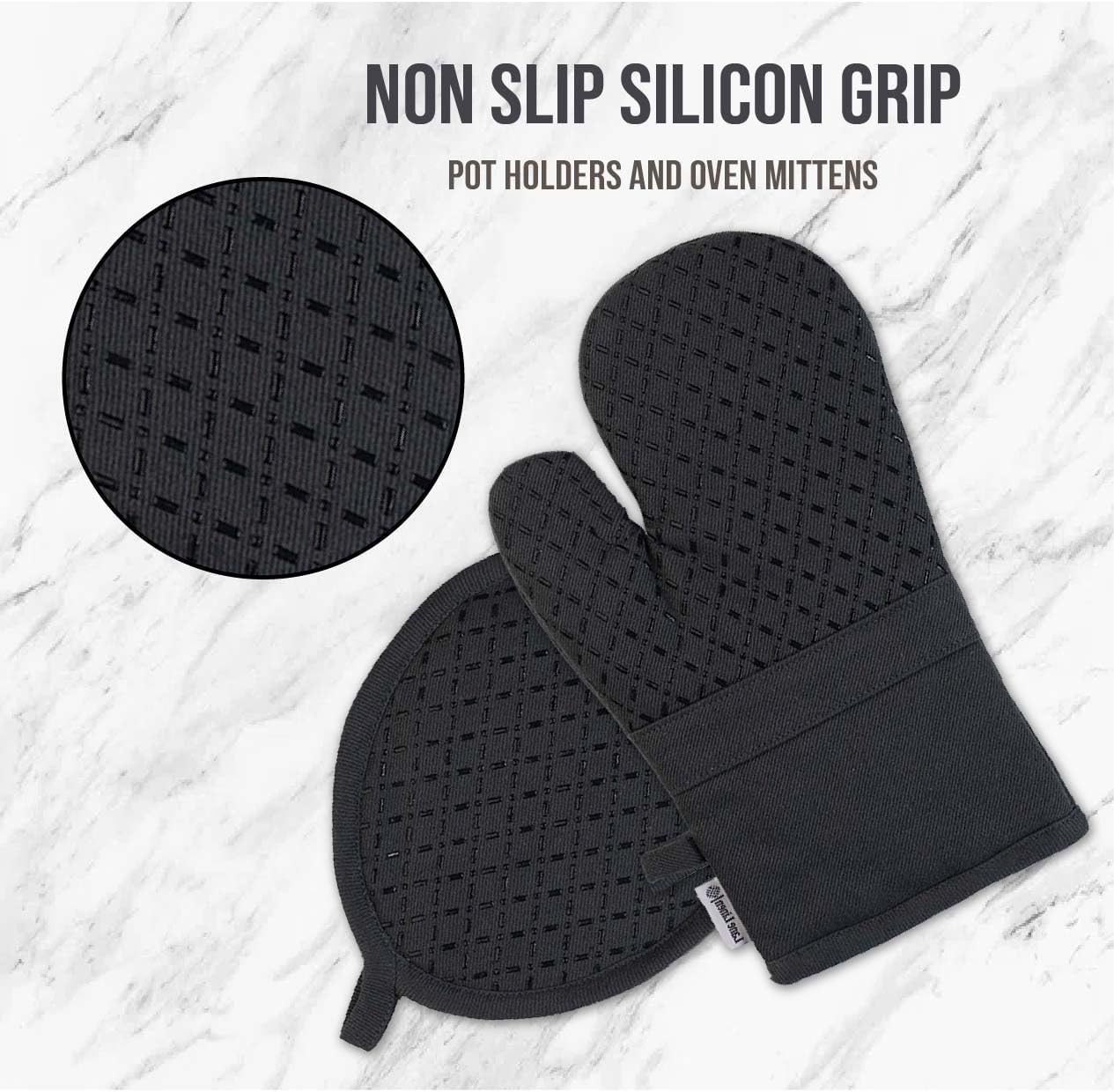 - Silicone Grip & Heat Resistant: Our oven mitts heat resistant and pot holders, with silicone grips, can withstand heat up to a sizzling 500°F (260°C). Say goodbye to singed forearms and scorched countertops—your hands will stay cool and collected while you cook up a storm!