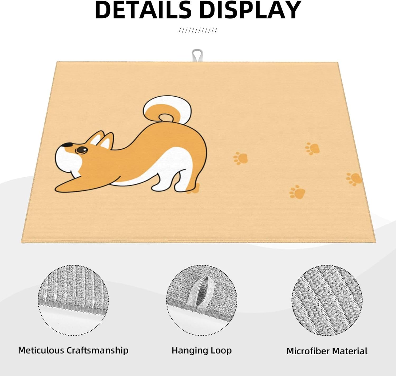 Cute Yellow Dog Paw Print Dish Drying Mat 18x24 For Kitchen Counter Absorbent Microfiber Dishes Pad Dish Drainer Rack Mats Fast Dry Kitchen Accessories