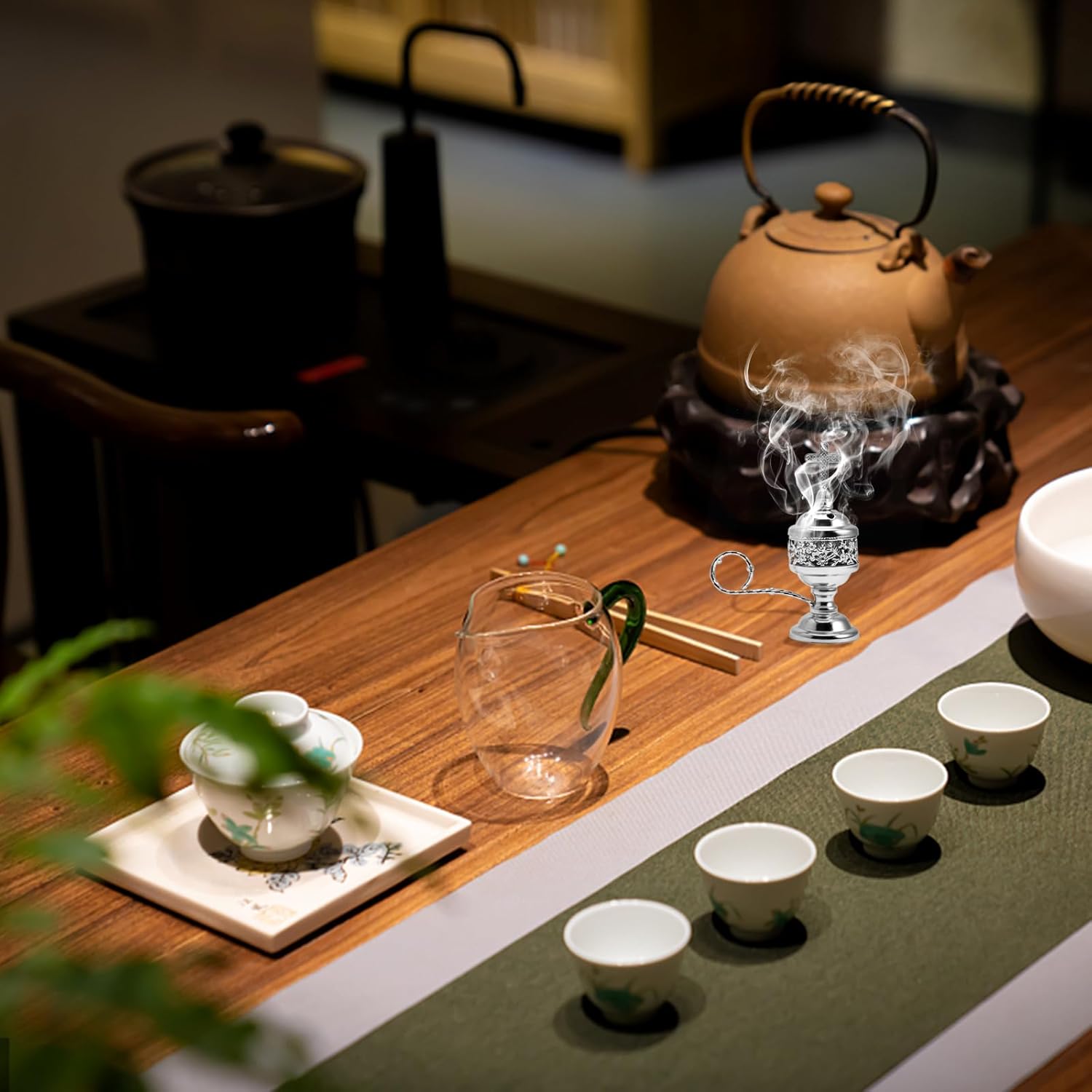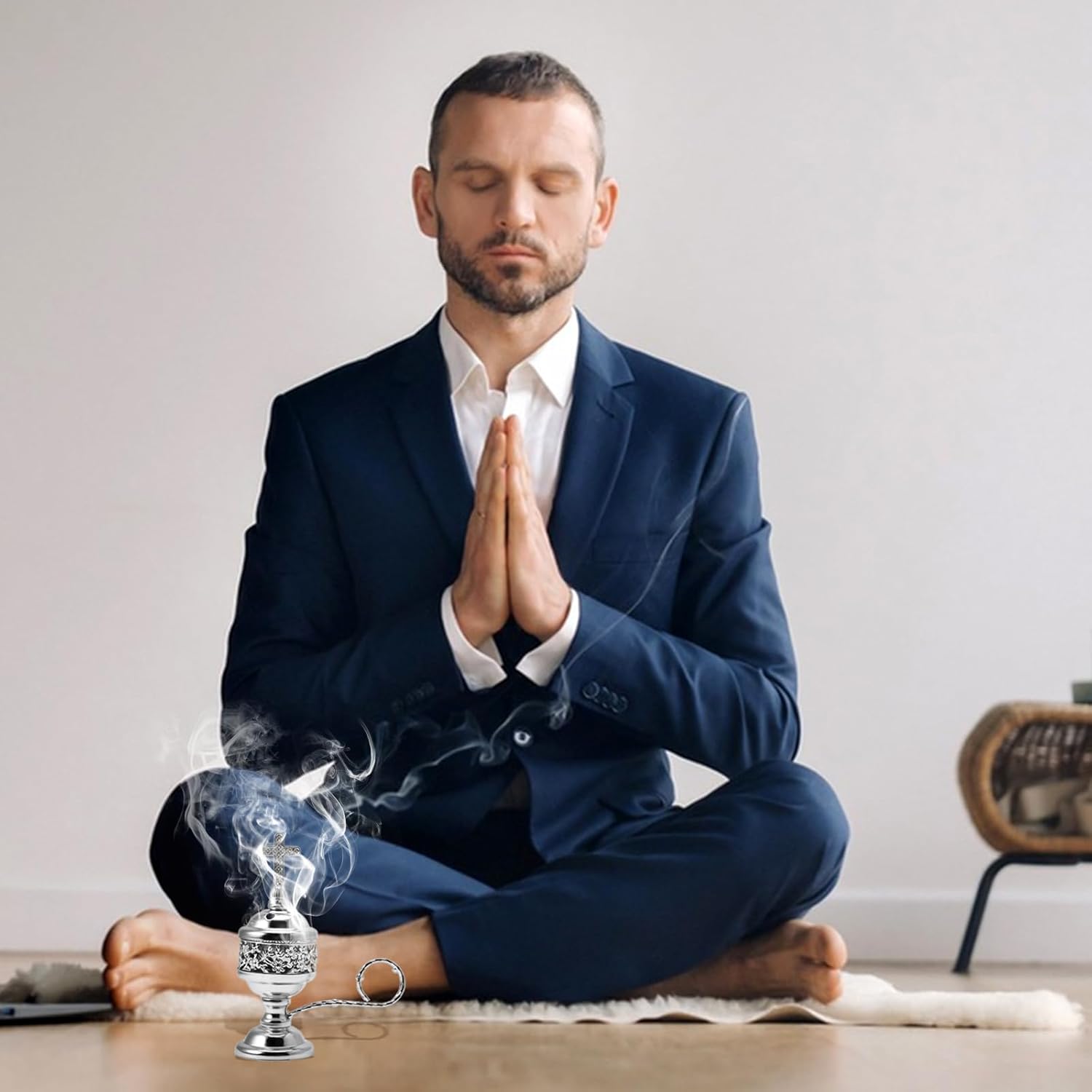 Yawlsow Incense Burner, Frankincense Charcoal Incense Stand, Bakhoor Incense Burner Holder, Ideal for Aromatherapy, Yoga and Spa, Home and Christian Church Censer, (Silver)