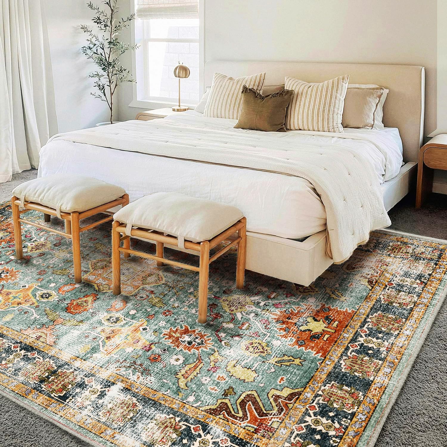 - Ultra-thin Safe: This ultra-thin Moroccan rug can be easily placed in entryways and under furniture, and won't get stuck on doors and become a tripping hazard. The sweeping robot can move freely to clean the carpet.This indoor rug can be used in many occasions, such as entry, living room, bedroom, dining room and more