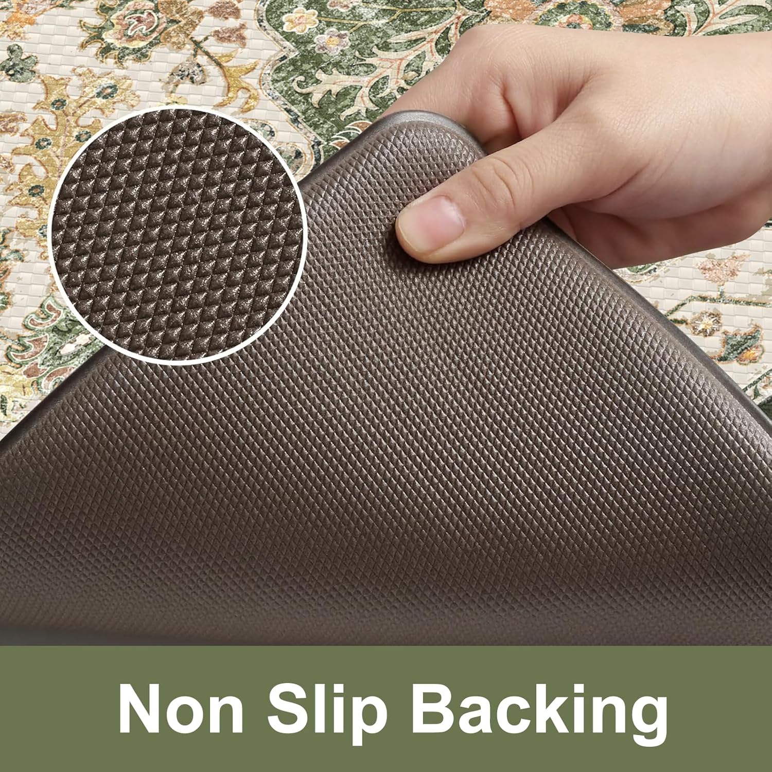 - Anti-Slip & Safty: Equipped with a padded non slip bottom so that the standing mats stay in place both on hard and carpet floors.The beveled edges of the kitchen mats help prevent tripping,fully protect you and your family's safety.Can be used on multiple surfaces (eg. tiles, wood, ceramic, marble, etc).[Tip]Should be placed on dry surface during use.