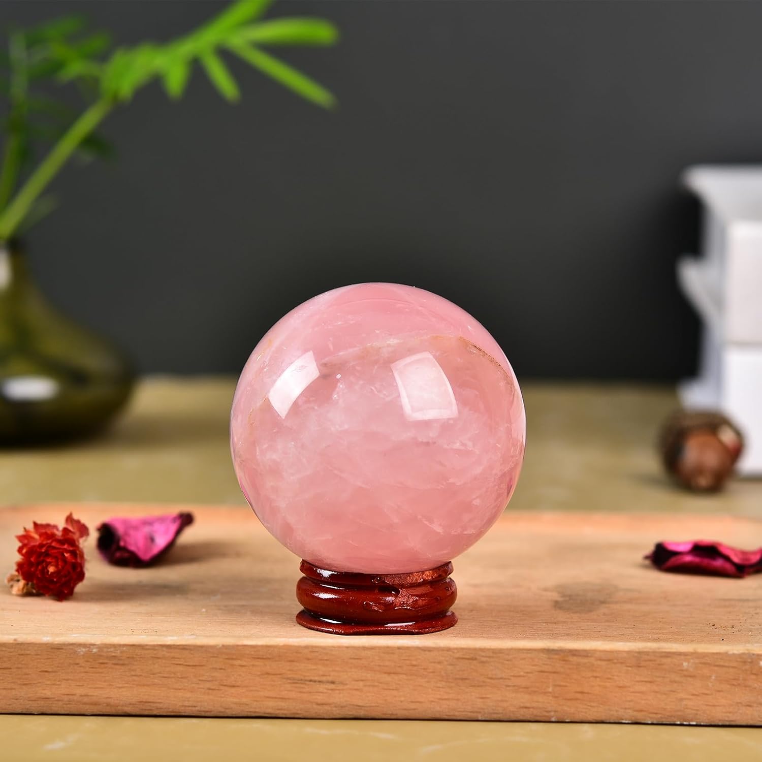 - 【Rose quartz Crystal ball】:size:5-6cm,Material:Natural pink quartz Rose Stone.Quantity:1Pce,with Free base,They are polished with 100% natural materials and contain no artificial materials (no dyes or color enhancements).2.0-2.5Inch