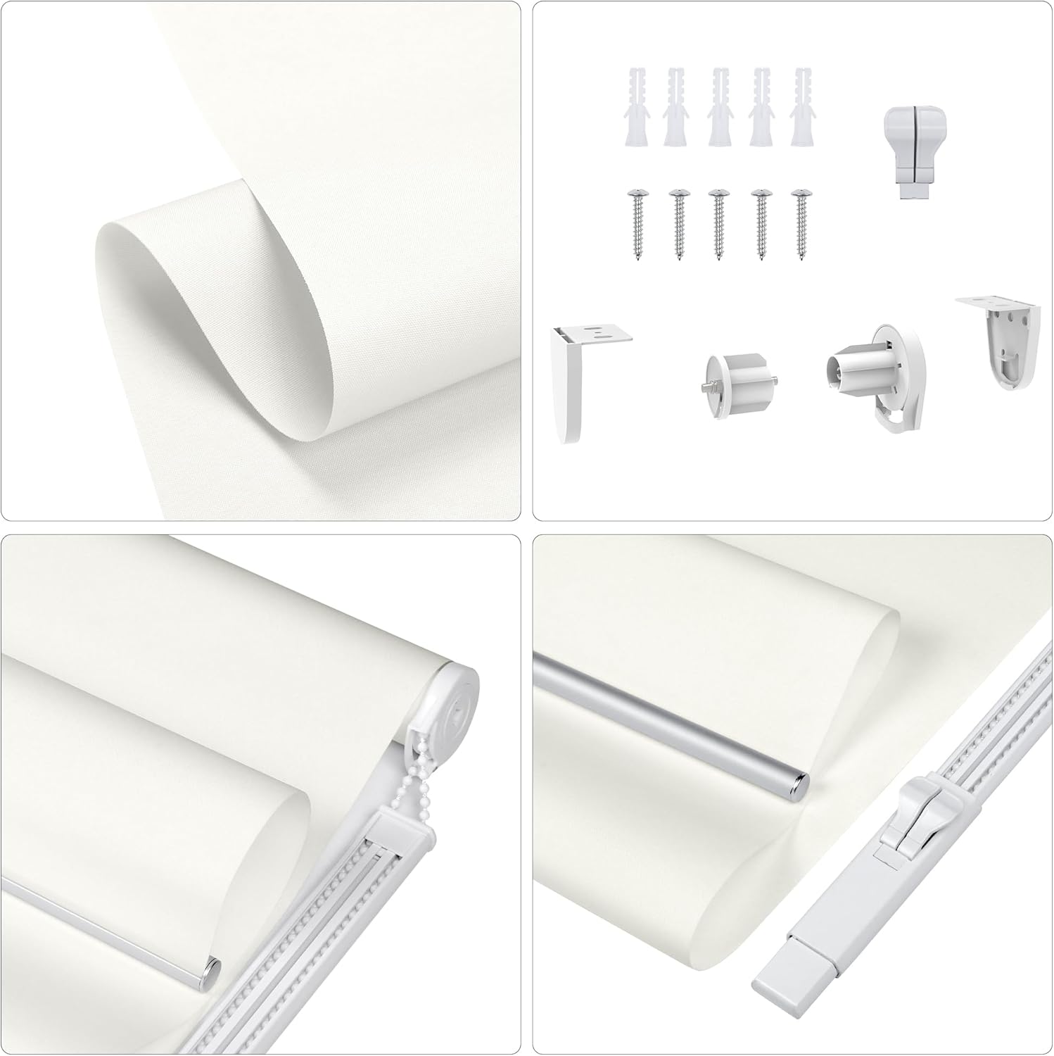 Homebox 50% Blackout Light Filtering Blinds for Windows,Room Darkening Roller Shades Roll up and Pull Down Blind Shades for Home Office 58" W×72" H Milk White