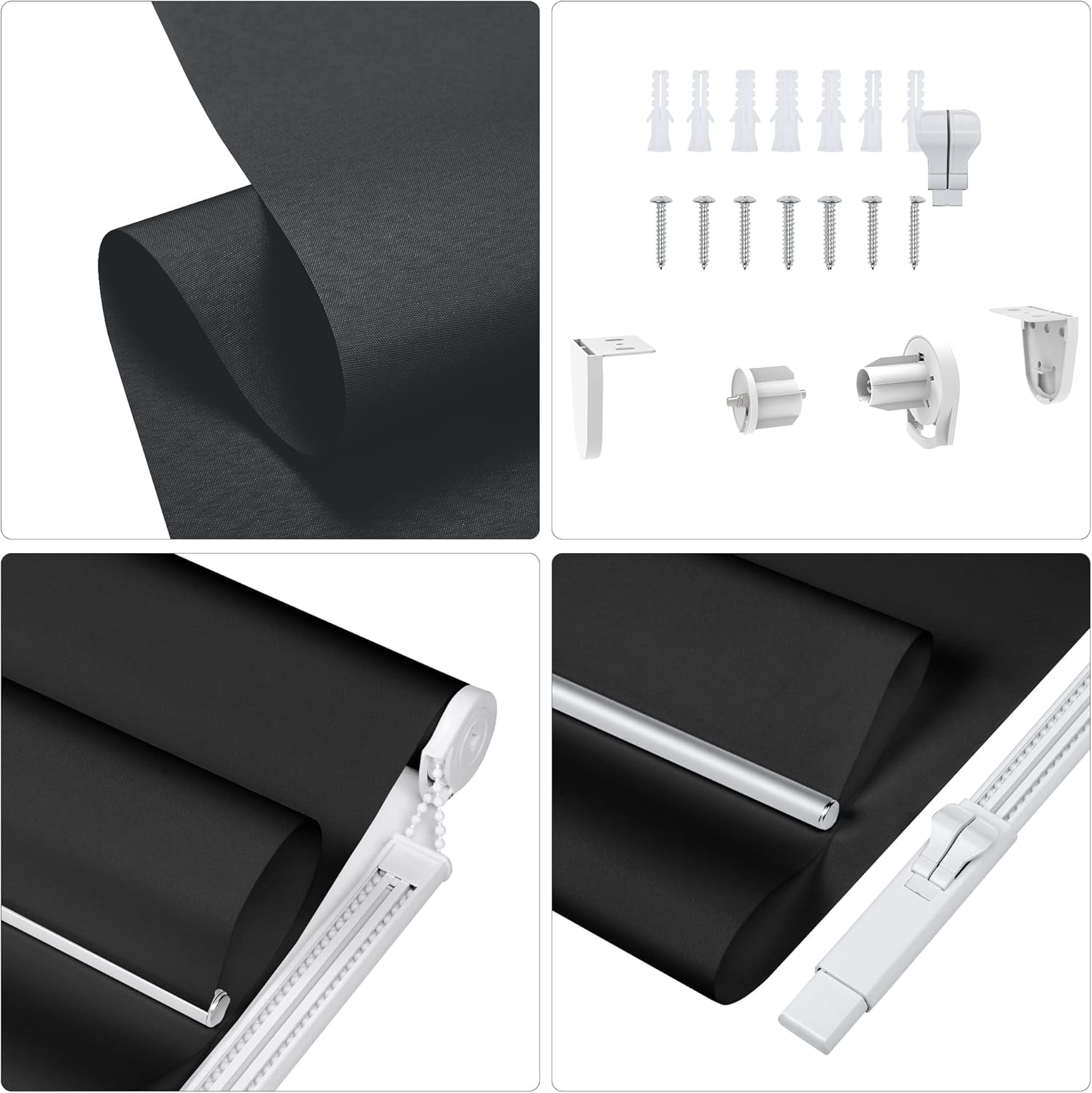 Homebox 70% Blackout Light Filtering Shade Blinds for Windows, Room Darkening Roller Shades Roll up and Down Blinds for Home and Office 36" W×72" H Black