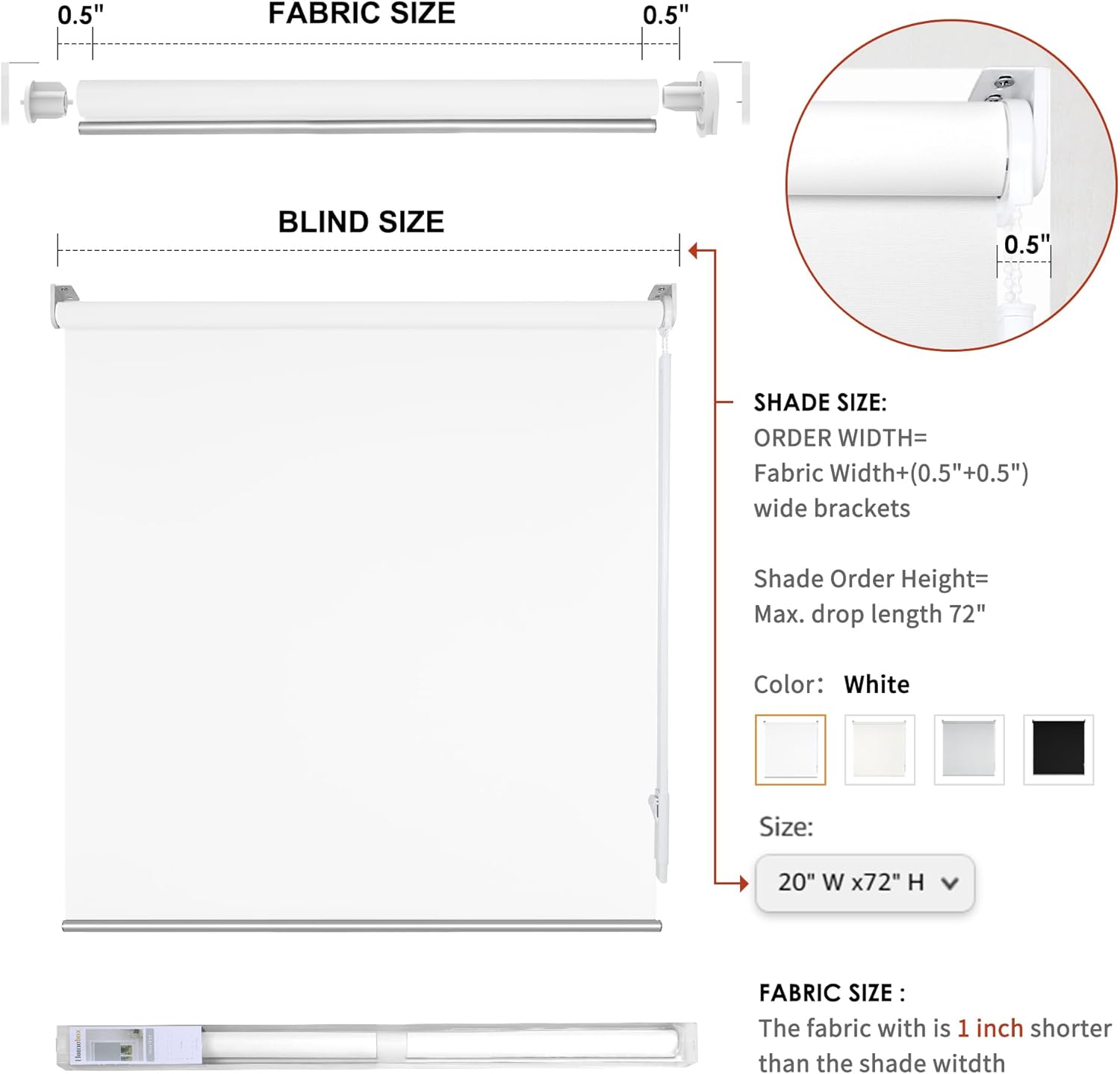 homebox 50% Blackout Light Filtering Blinds for Windows,Room Darkening Roller Shades Roll up and Pull Down Blind Shades for Home Office 34"" W×72"" H White