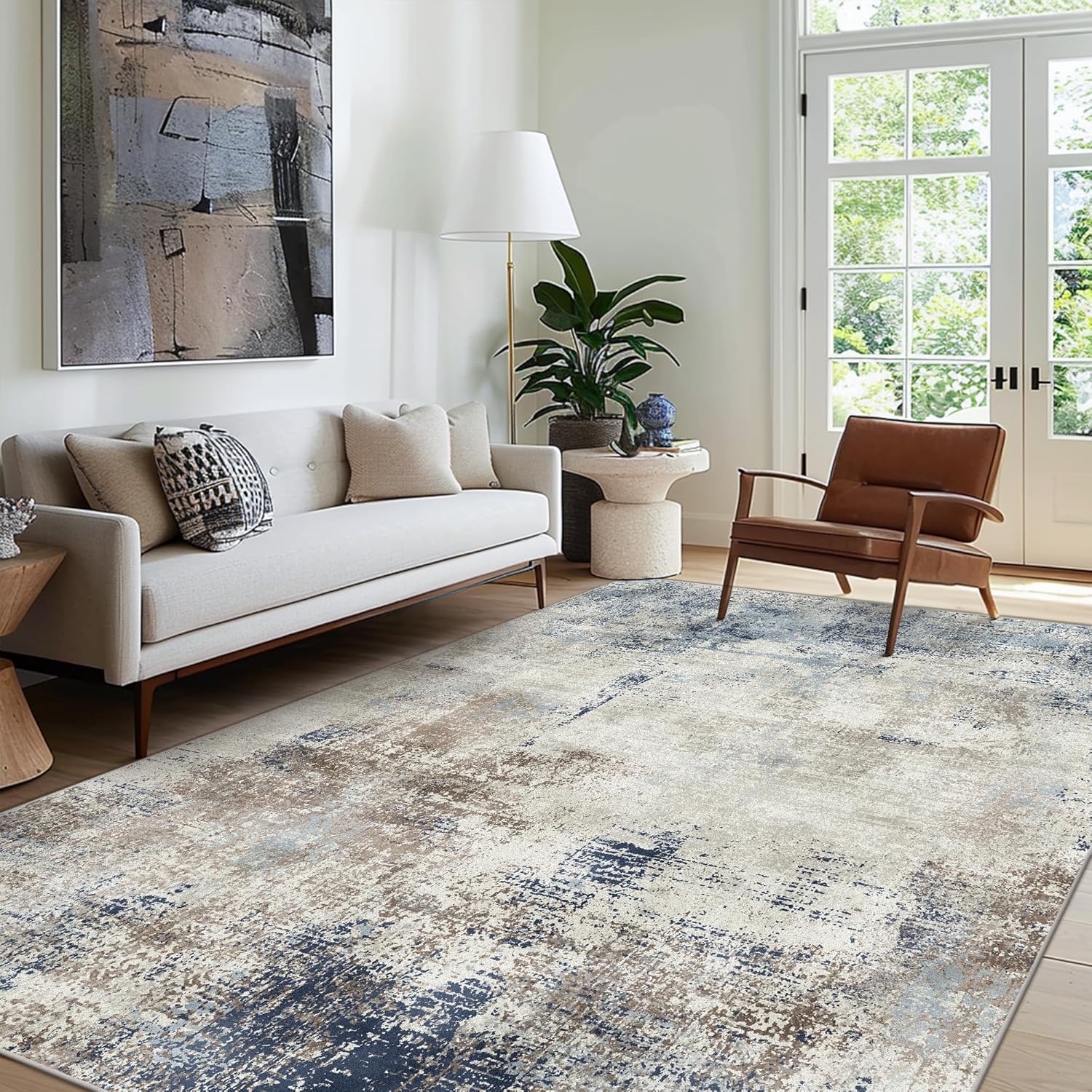 Area Rugs 8x10 Machine Washable Rug for Bedroom Living Room, Large Modern Abstract for Dining Room, Indoor Low Pile Carpet Soft Rugs with Non Slip Rubber Backing, Abstract Blue Gray