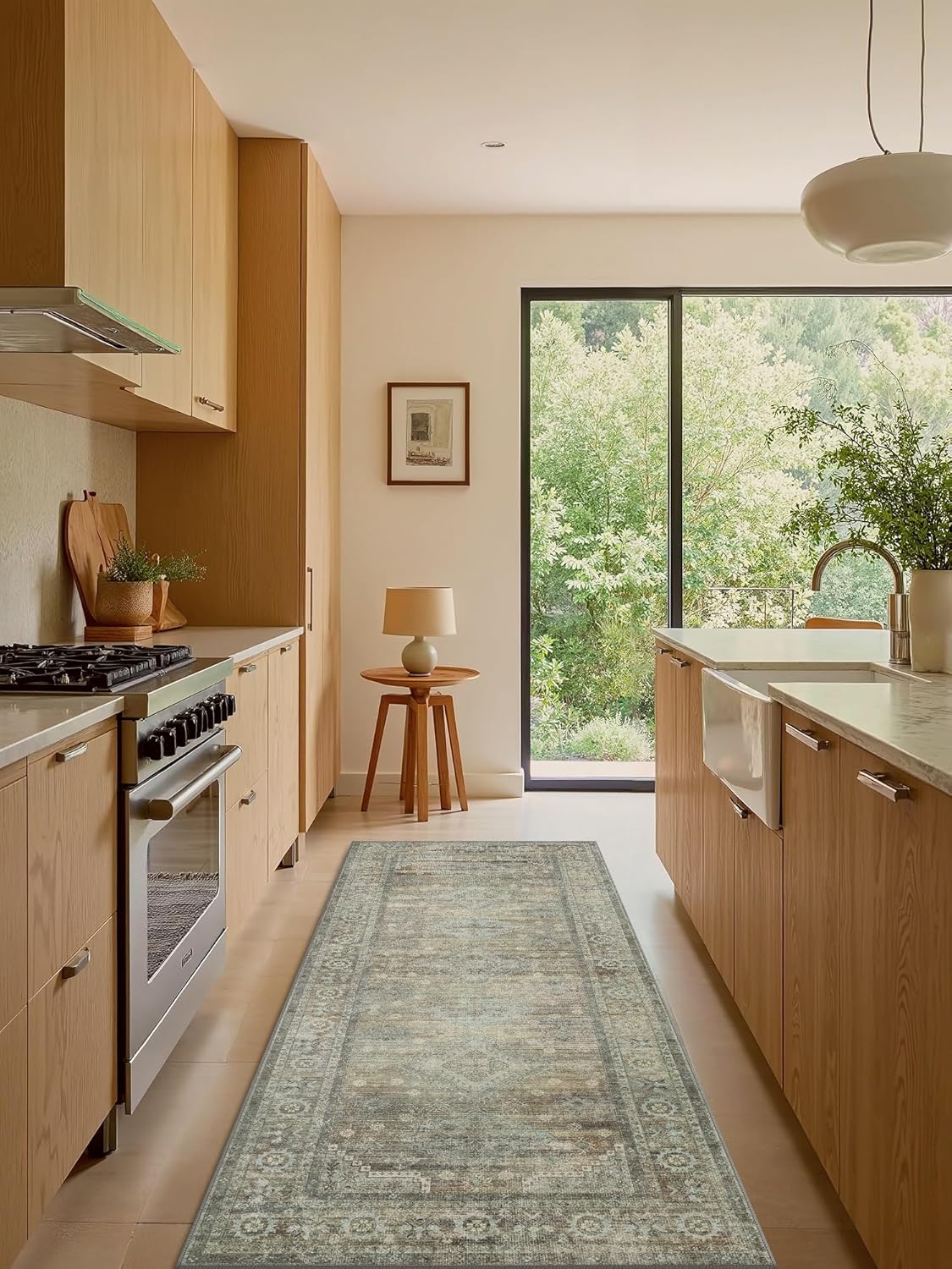 Runner Rug for Hallway Kitchen, 2x7 Machine Washable Runners Rug for Entryway, Soft Modern Boho Throw Rugs, Low Pile Floor Cover with Non Slip Backing, Distressed Light Greyish Sage Green