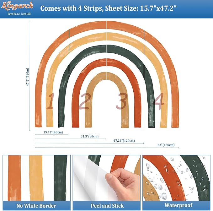 - [Upgraded Version Kids Stickers]: Our nursery decor has no white or transparent border around the different color strips,which can match any color of walls. The others' have white between the rainbow colors, only fit for white surface.