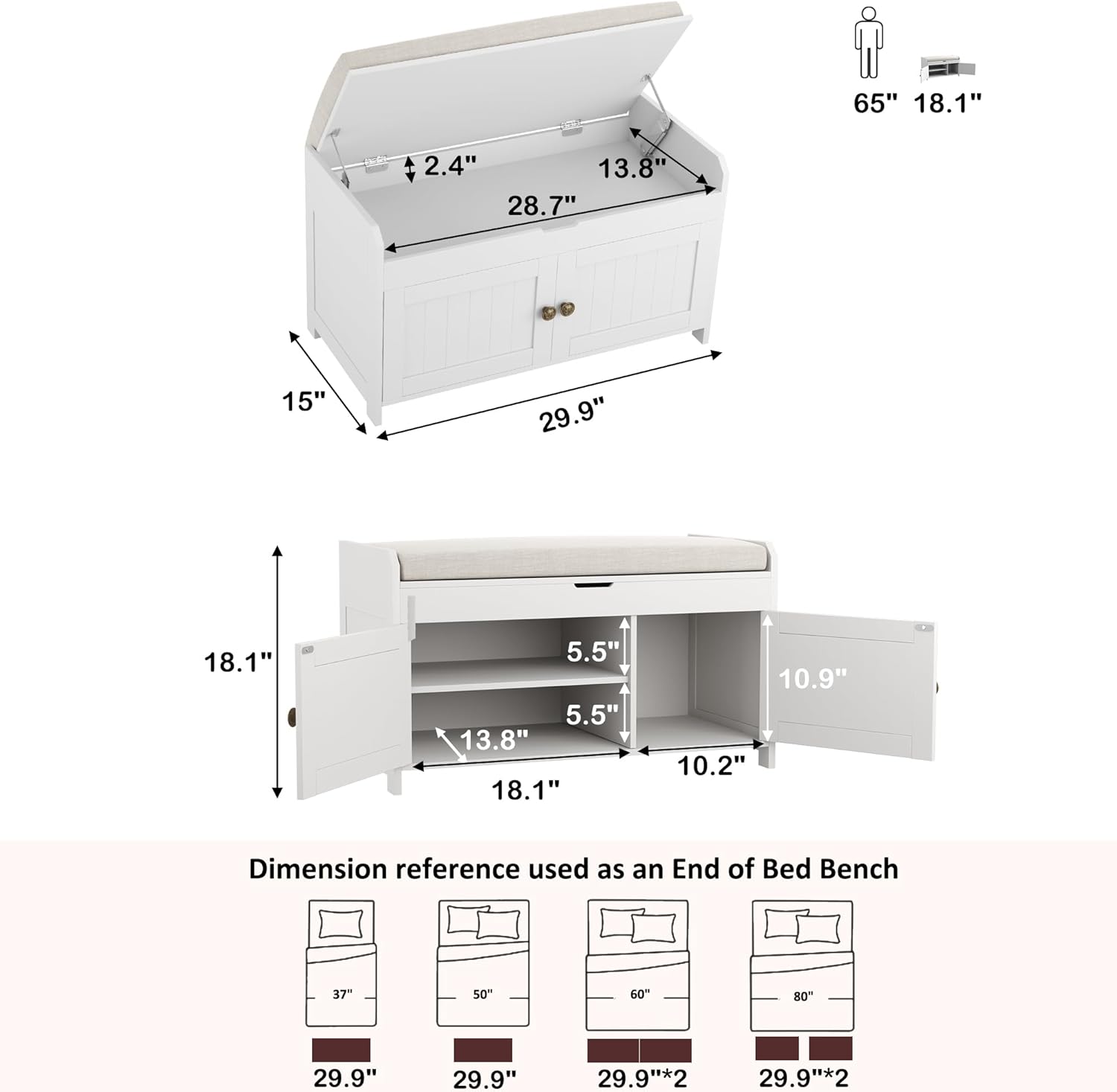 HOMEFORT 30" Shoe Bench with Lift Top Storage, Entryway Bench with Cushioned Seat, Wooden End of Bed Bench, Shoe Cabinet Bench with Hidden Storage Space, for Bedroom, Hallway,White
